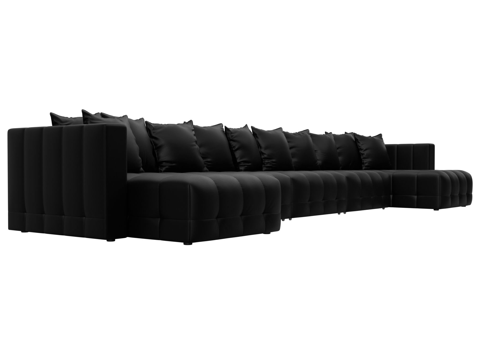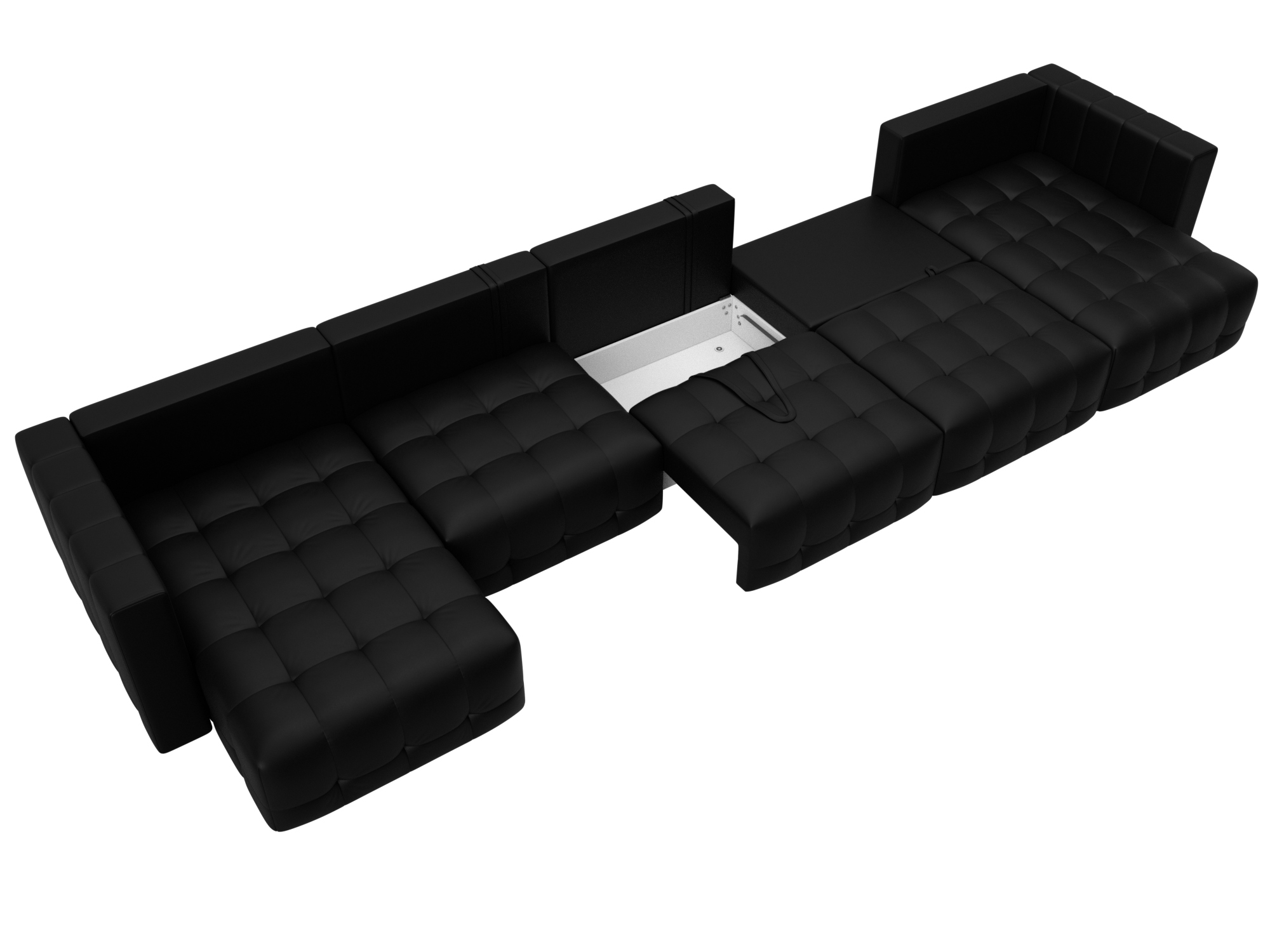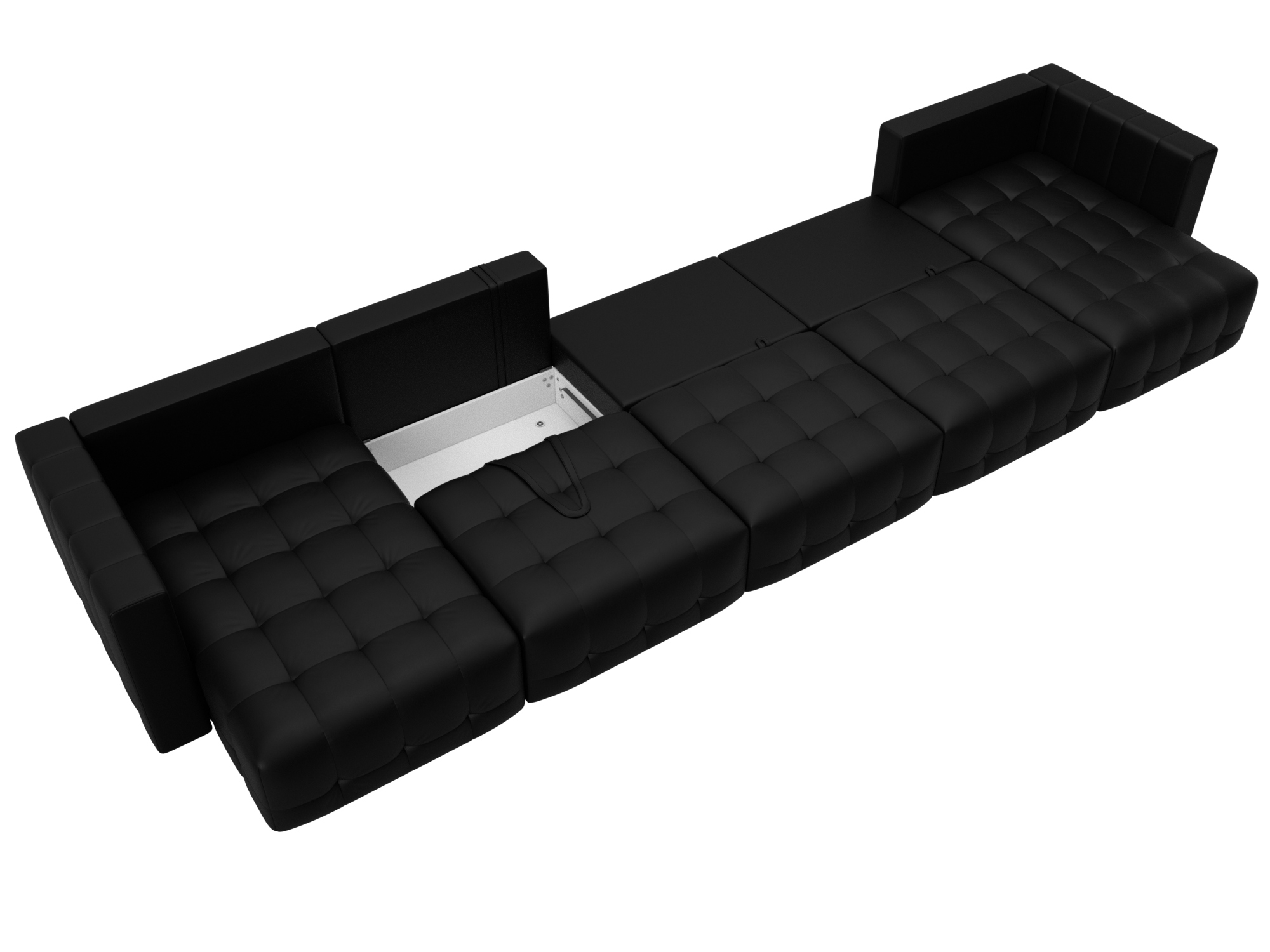 Диван П-образный Лига-052 НПБ МегаЛонг Экокожа черный