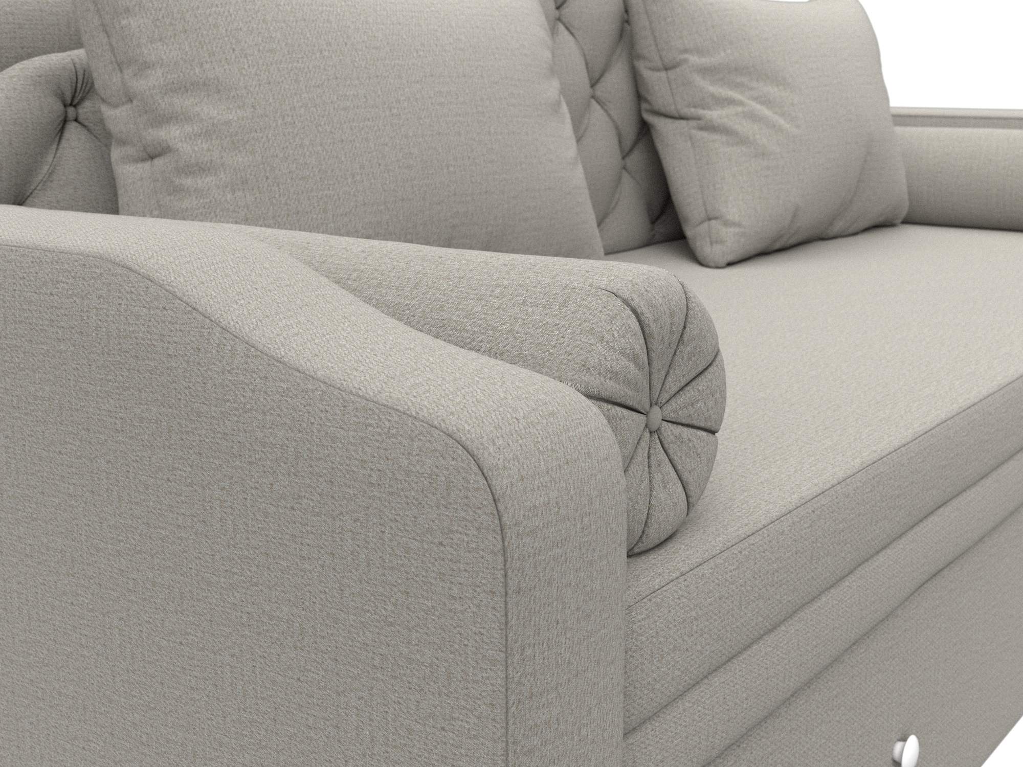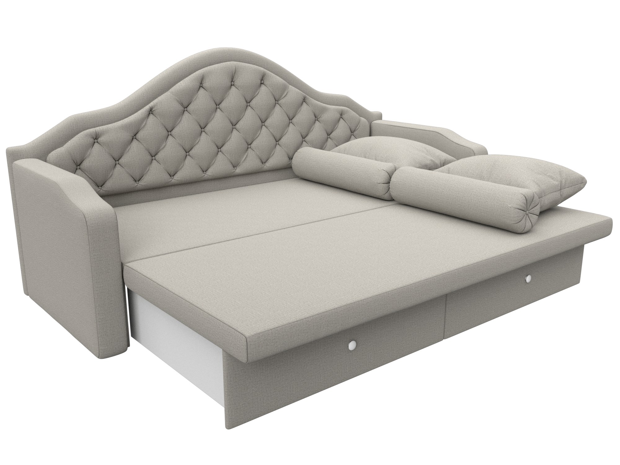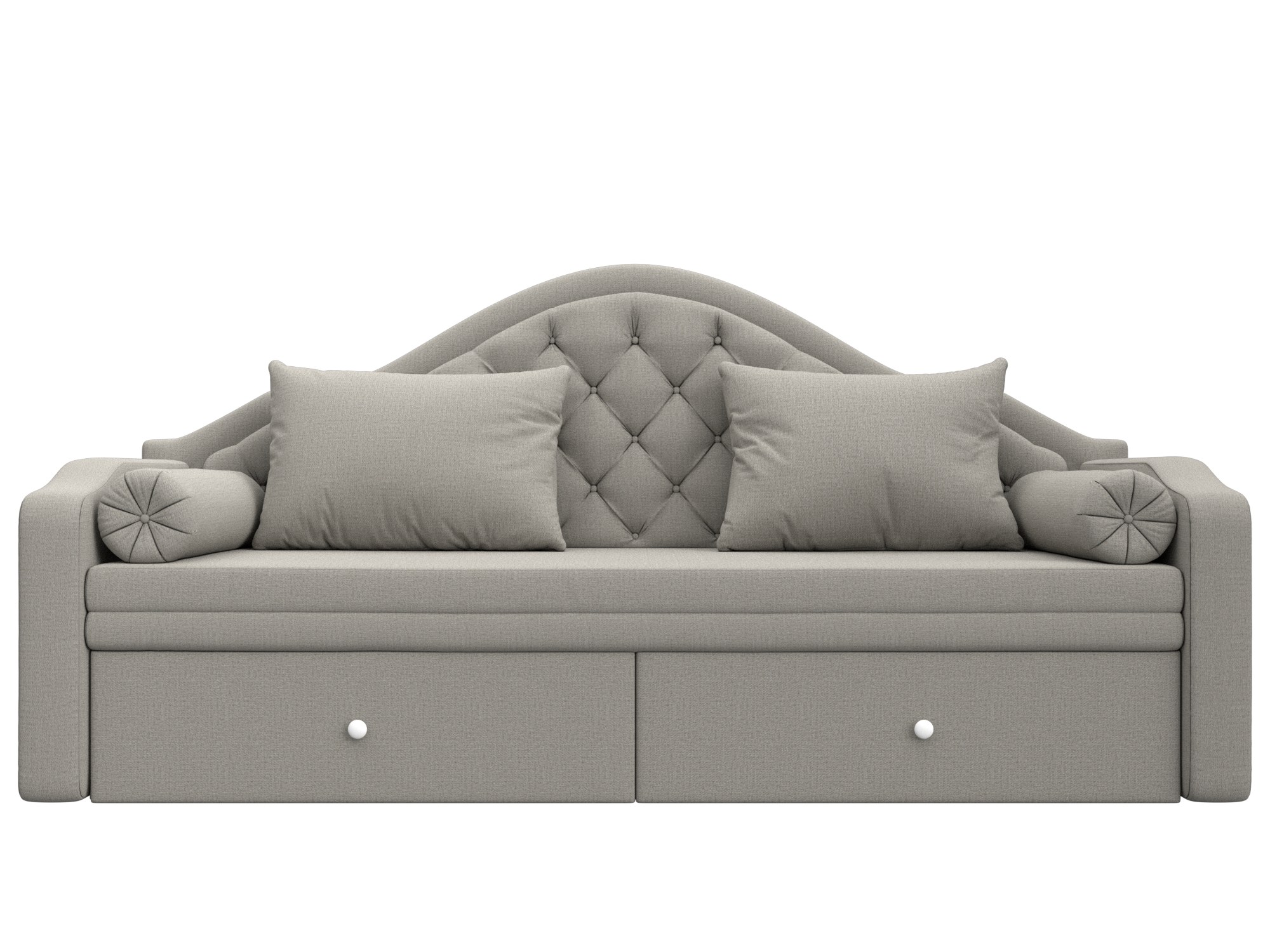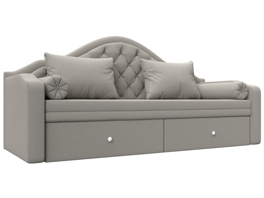 Изящная каретная стяжка на спинке прямого дивана-трансформера Сойер, будет отлично смотреться в помещении, оформленном в стиле кантри, прованс и классик. Приобрести данную модель можно в различных цветовых оттенках.