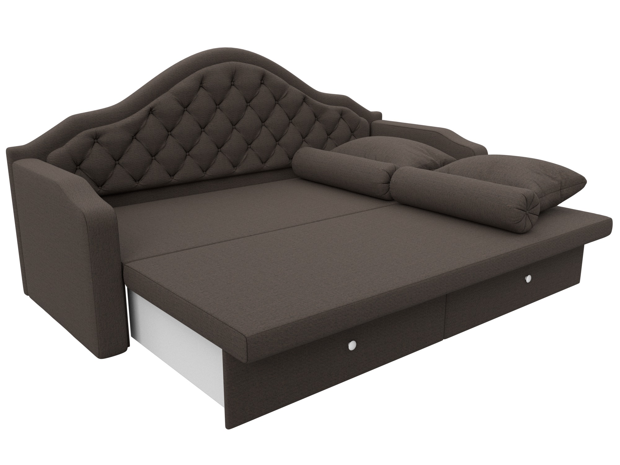 Сойер – прямой диван с выкатной системой трансформации, созданный в элегантном классическом дизайне. Модель дополняется двумя мягкими подушками и стильными валиками. В нижней части корпуса расположены 2 выдвижных ящика с хромированной фурнитурой.