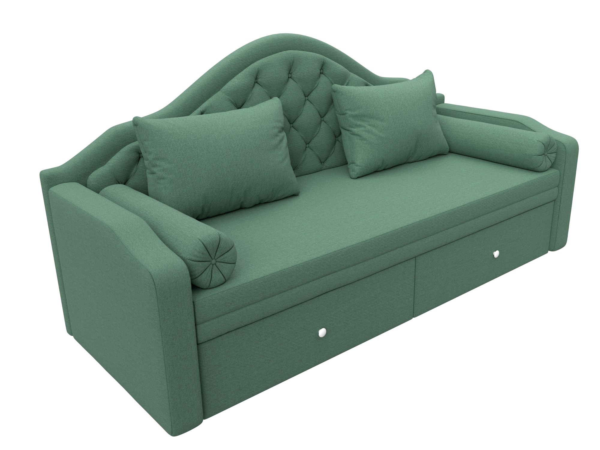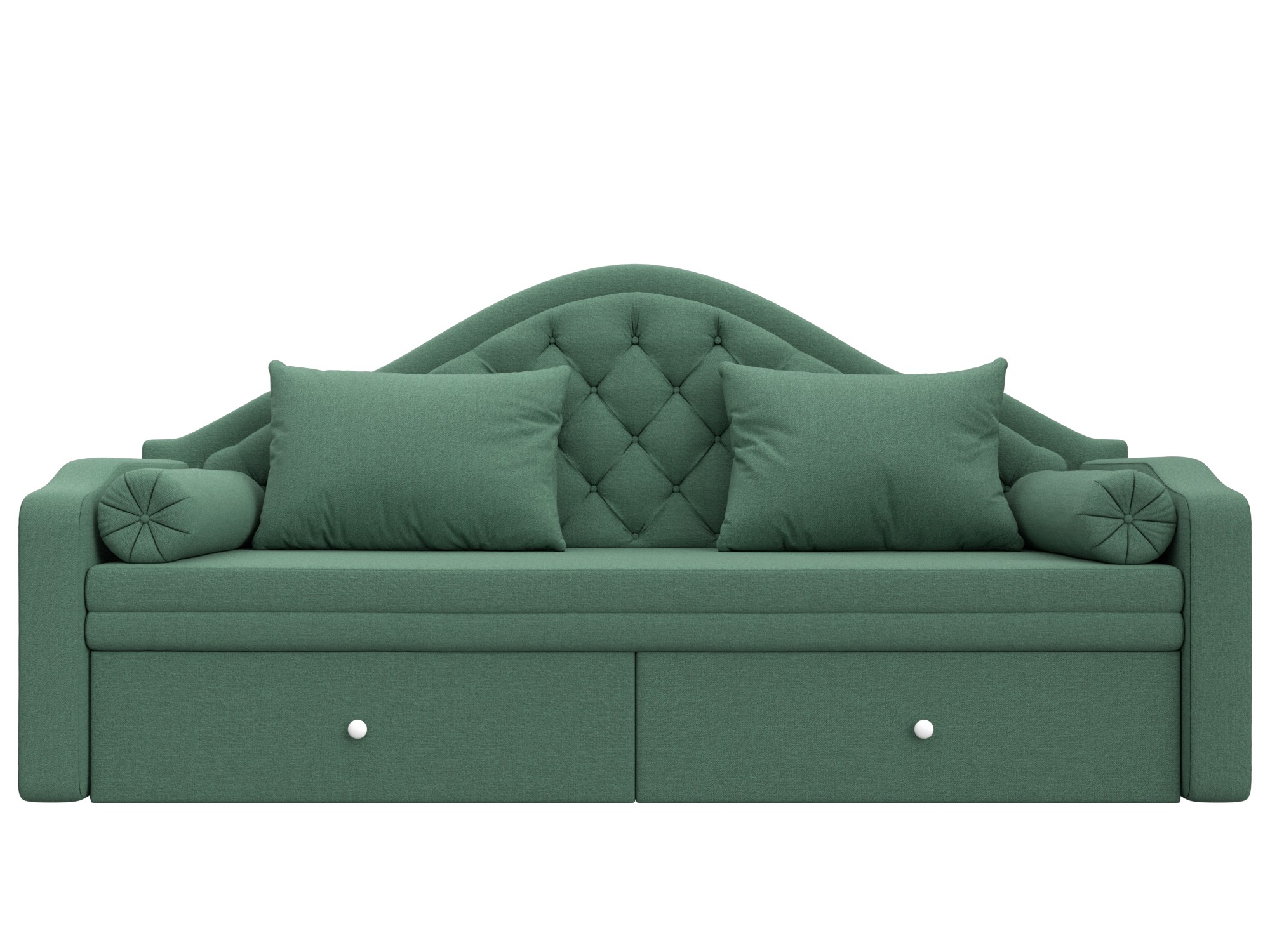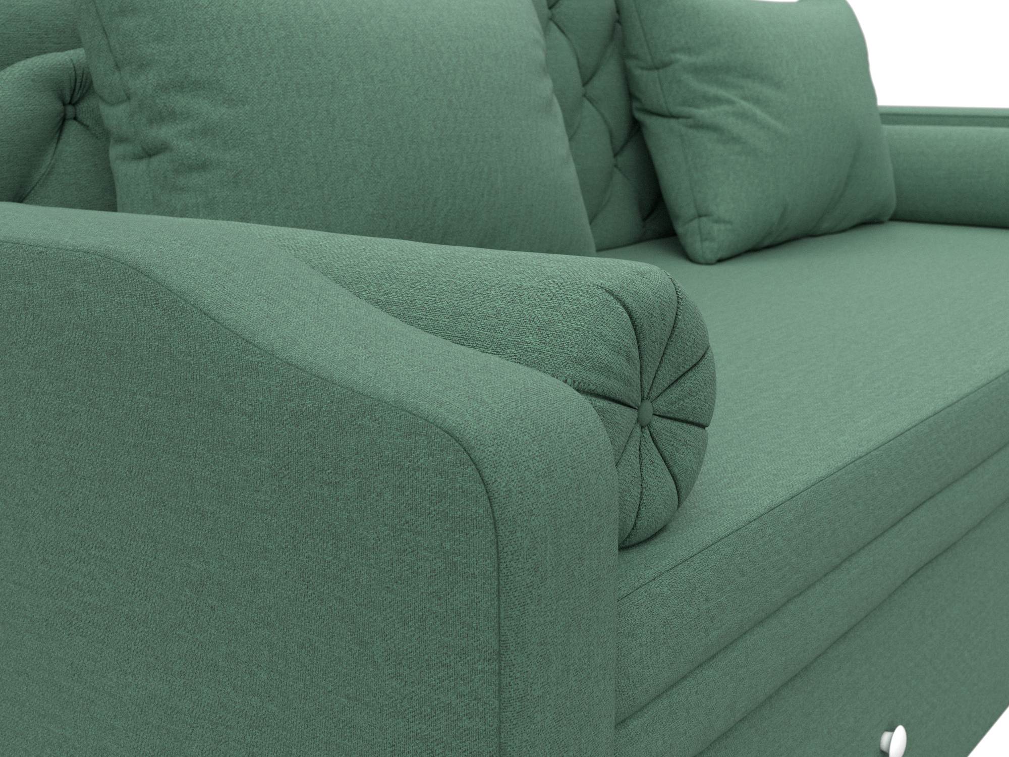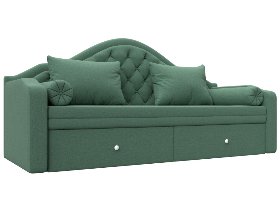 Изящная каретная стяжка на спинке прямого дивана-трансформера Сойер, будет отлично смотреться в помещении, оформленном в стиле кантри, прованс и классик. Приобрести данную модель можно в различных цветовых оттенках.