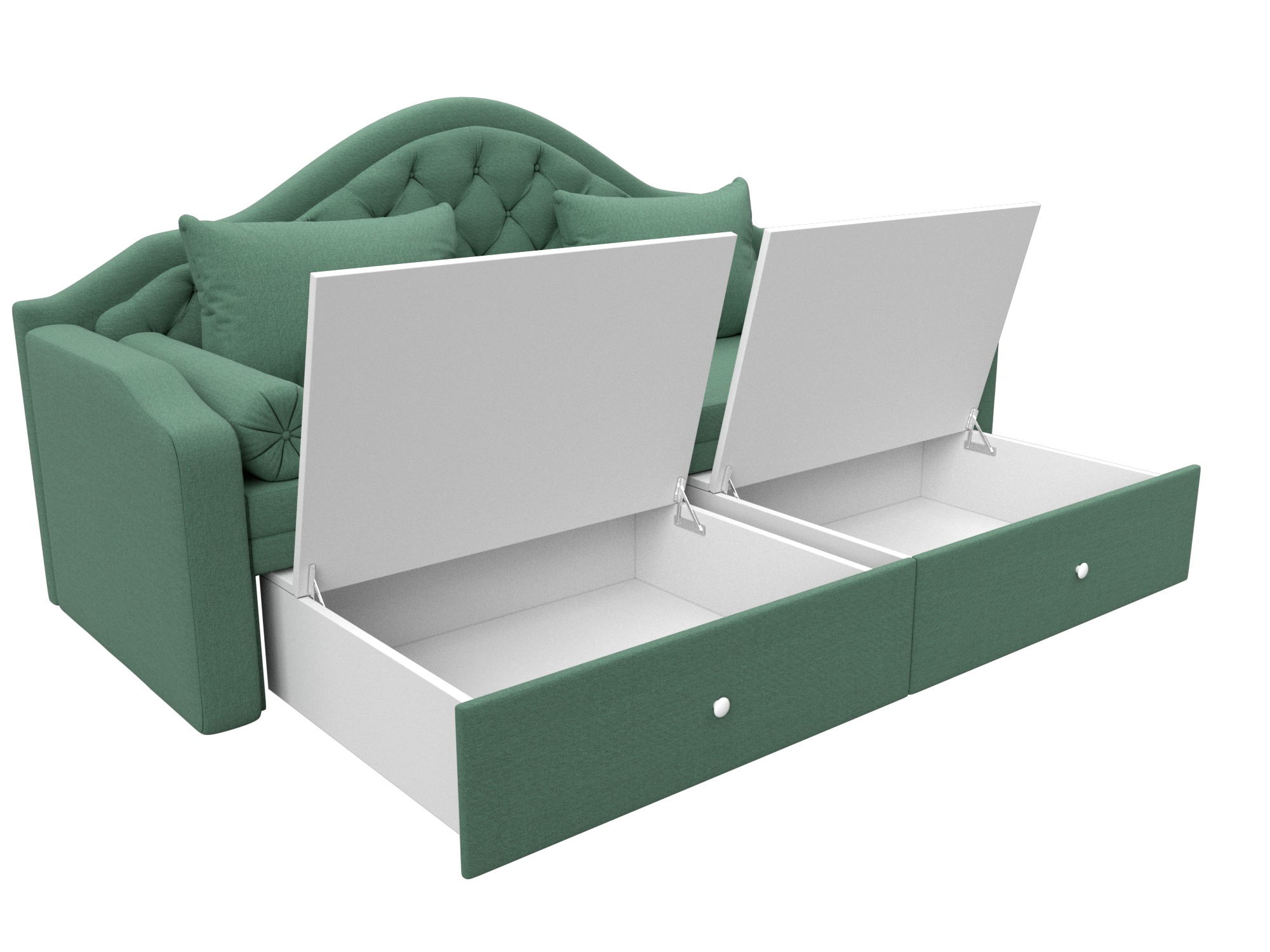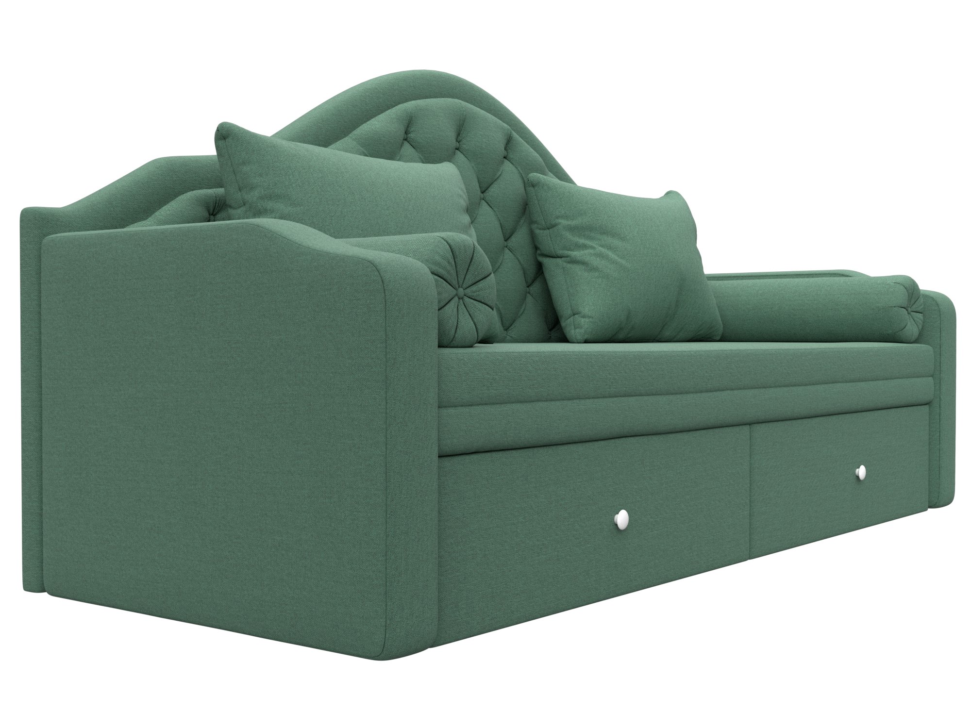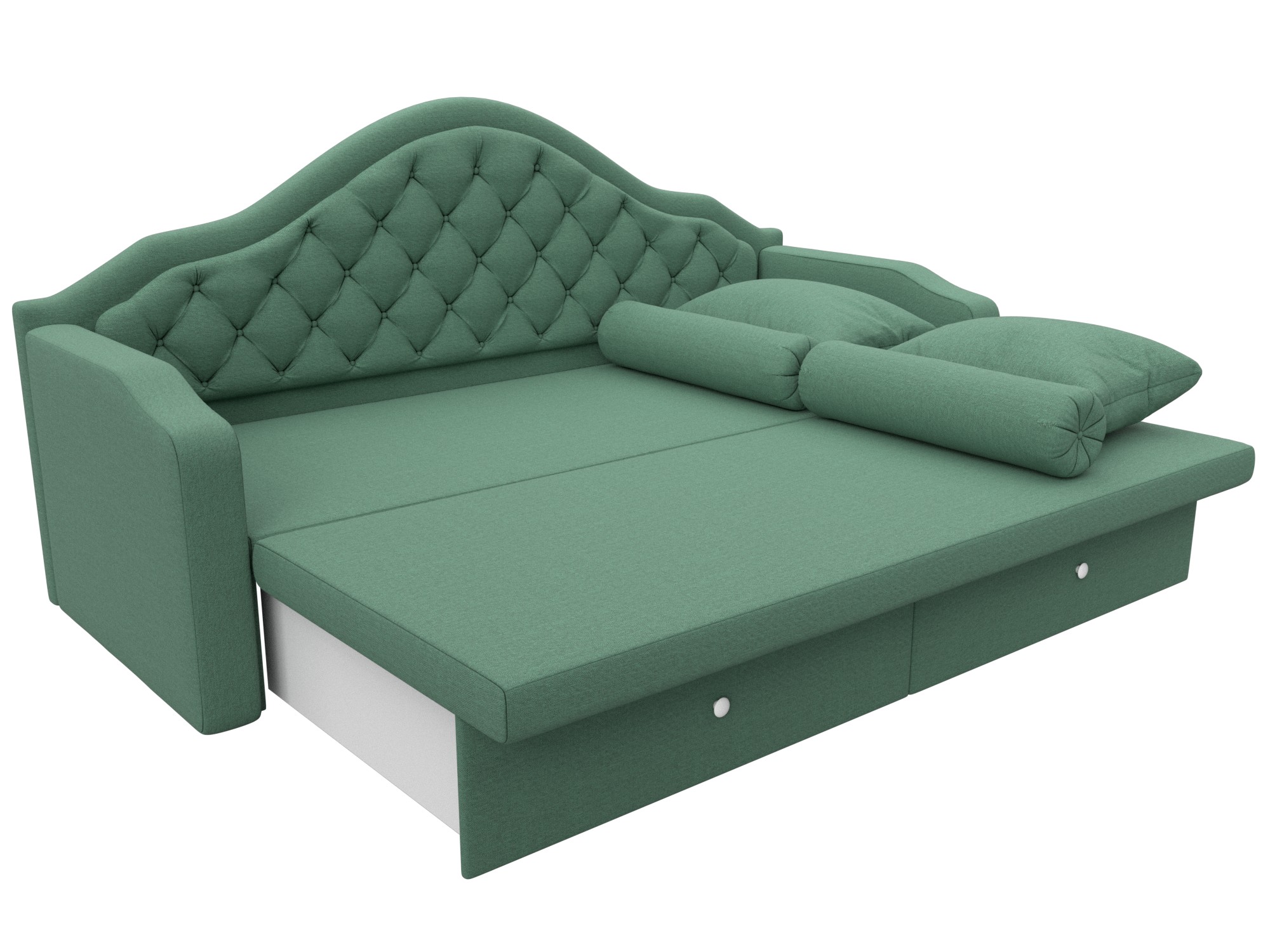 Изящная каретная стяжка на спинке прямого дивана-трансформера Сойер, будет отлично смотреться в помещении, оформленном в стиле кантри, прованс и классик. Приобрести данную модель можно в различных цветовых оттенках.