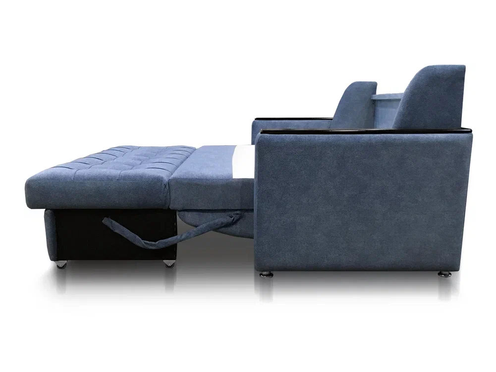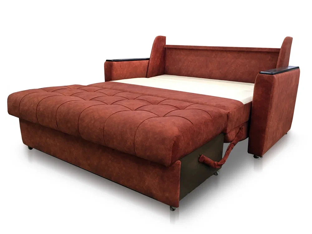 -Простая и надежная система трансформации "Дуги-кронштейны" . Разложить диван очень просто. Для этого нужно спинку дивана потянуть вниз, сиденье на прорезиненных колесиках выкатится вперед. Затем опустить подголовник. Диван-кровать готов к использованию;