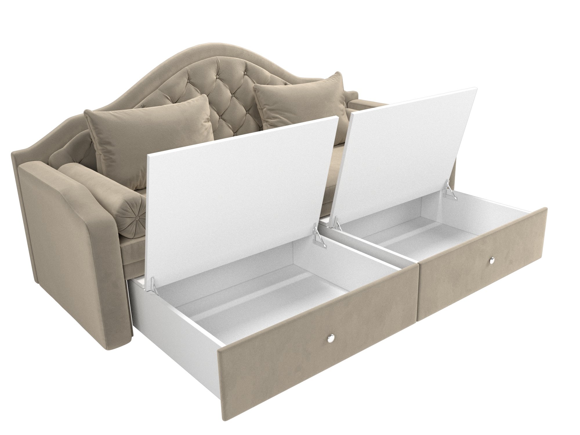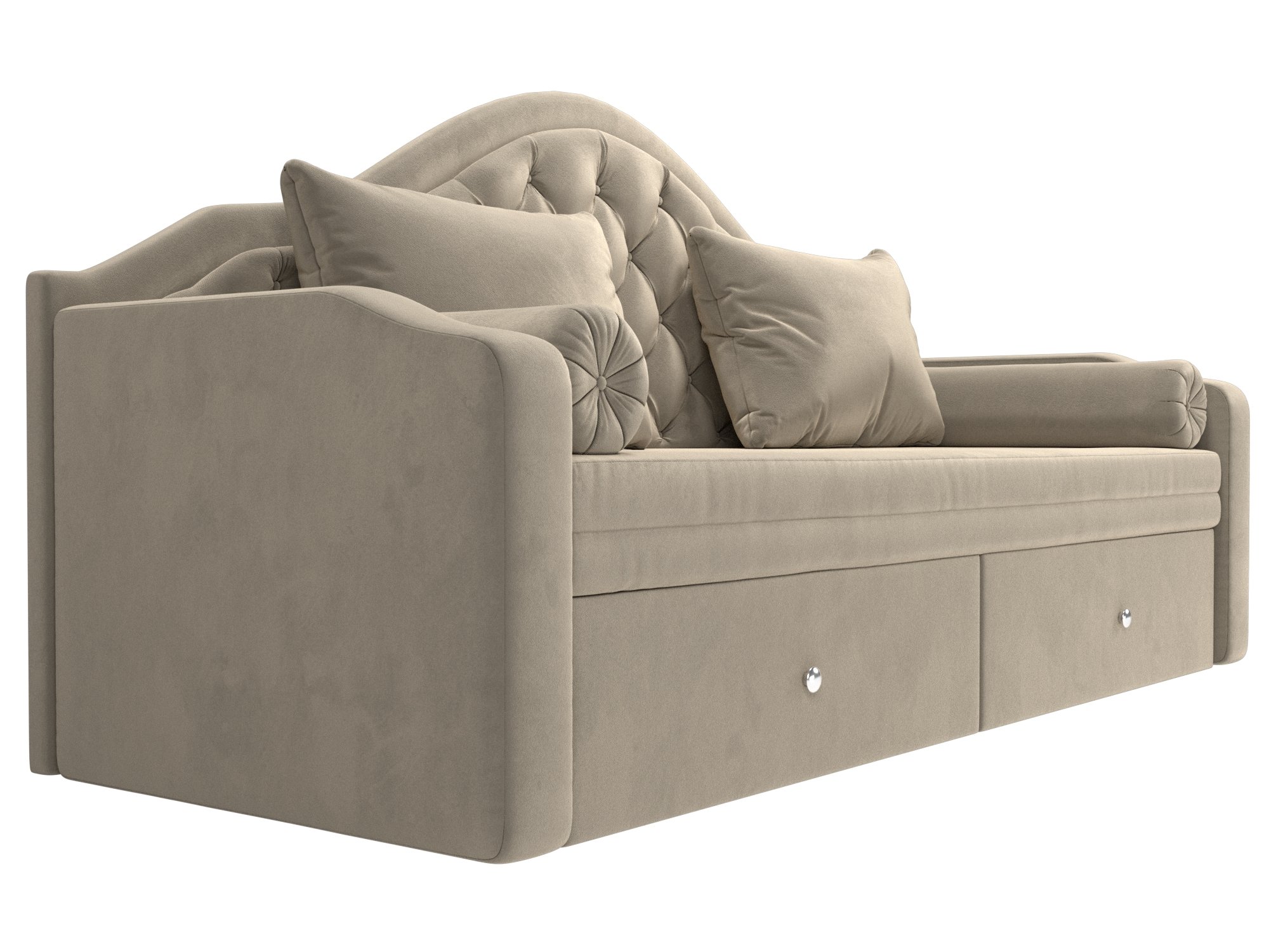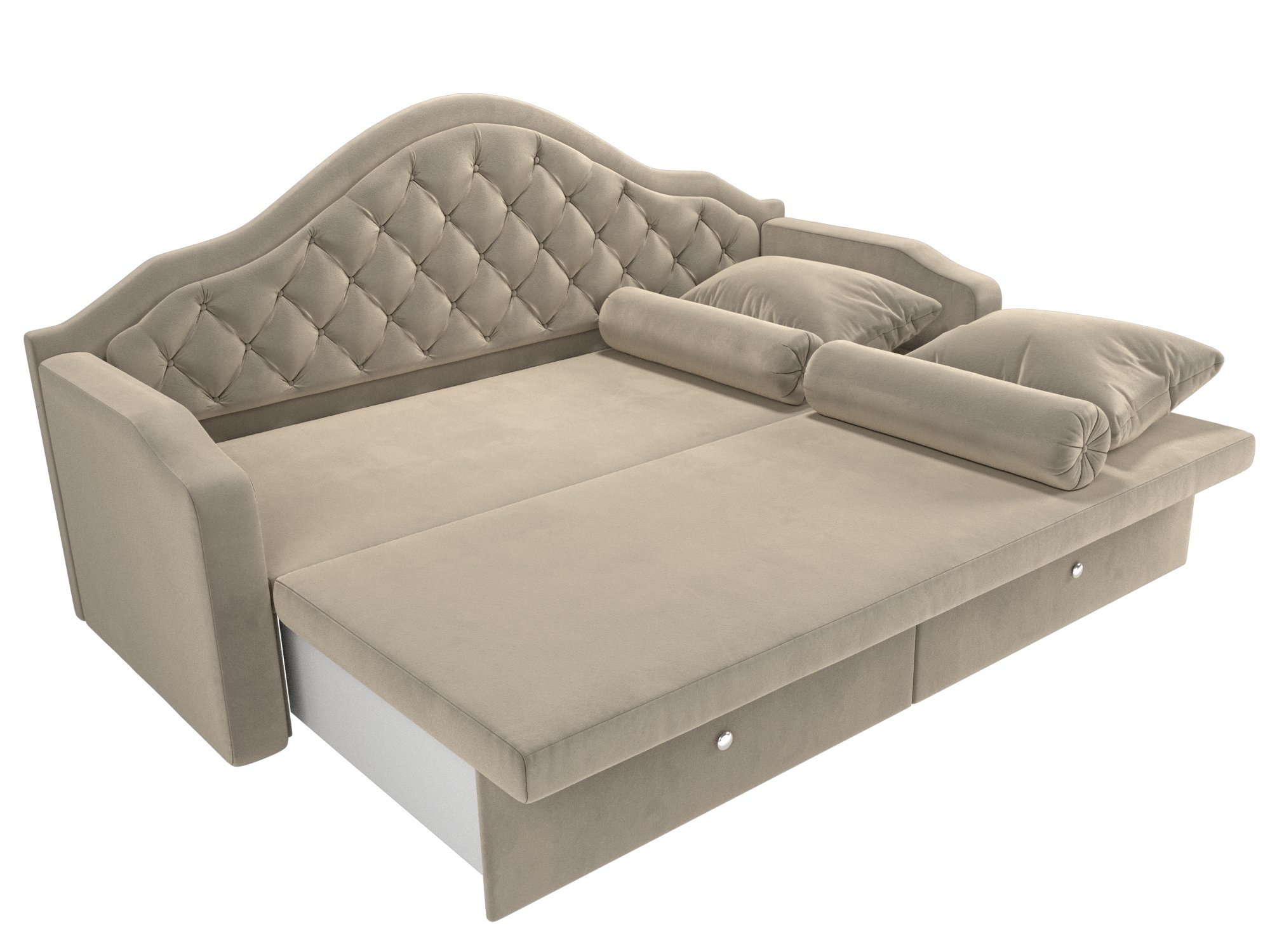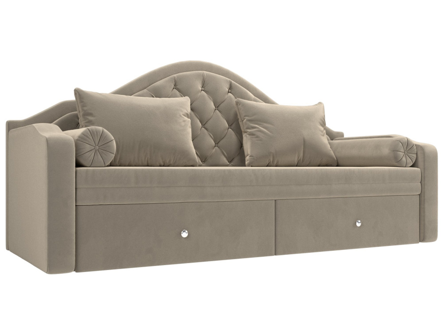 Сойер – прямой диван с выкатной системой трансформации, созданный в элегантном классическом дизайне. Модель дополняется двумя мягкими подушками и стильными валиками. В нижней части корпуса расположены 2 выдвижных ящика с хромированной фурнитурой.
