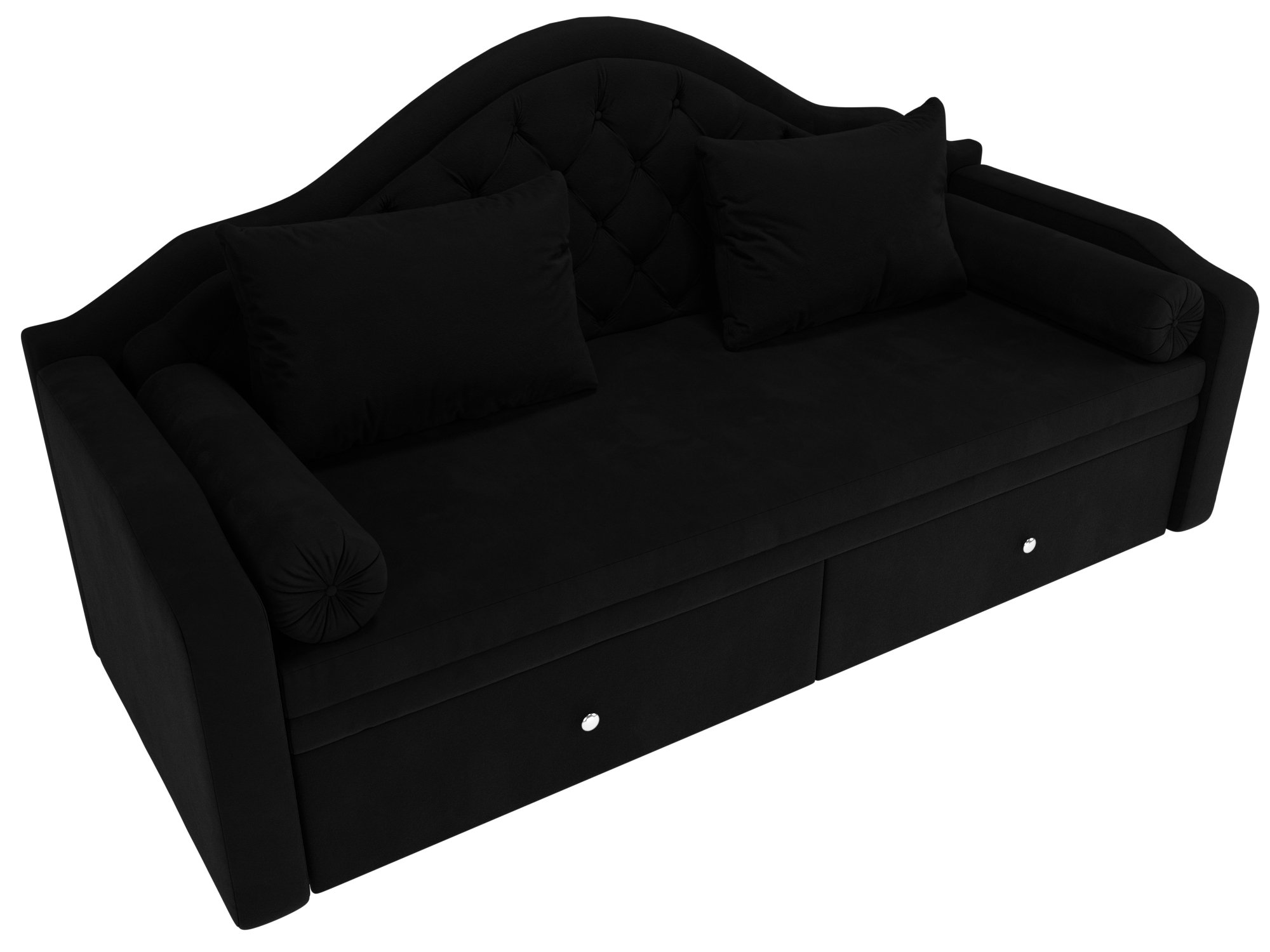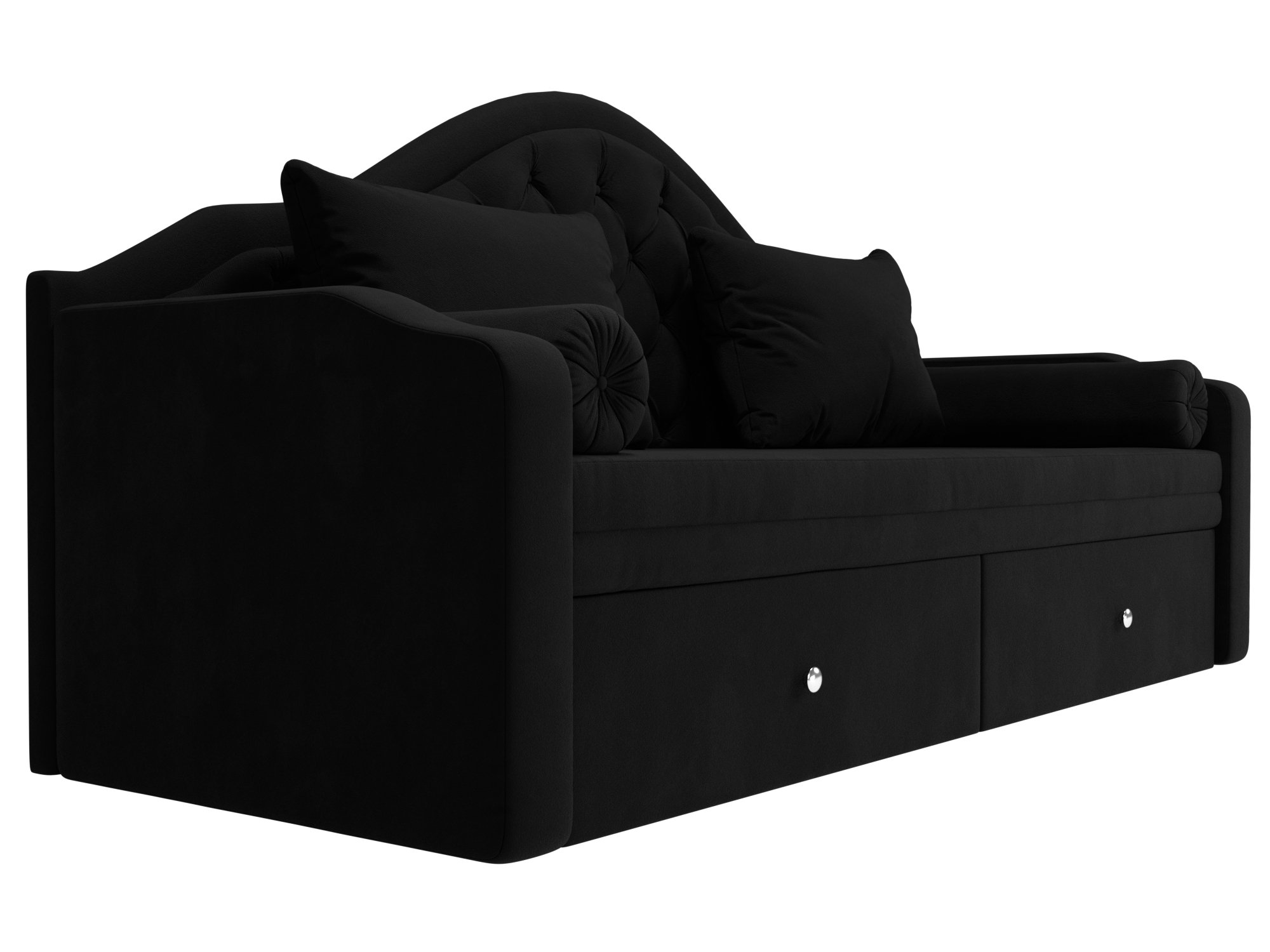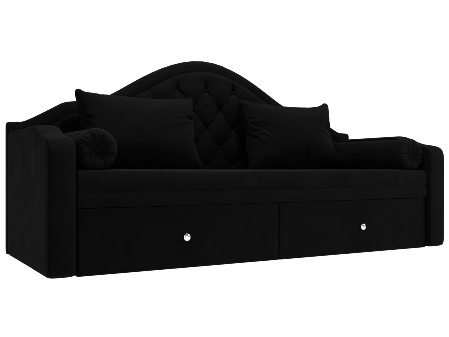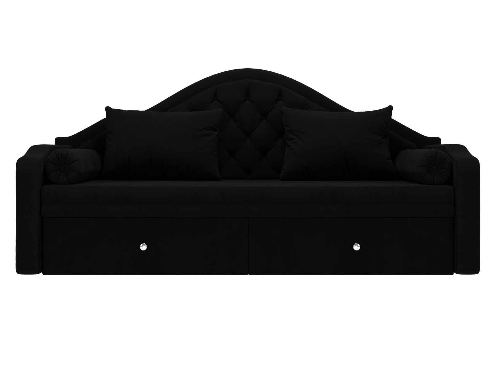 Прямой диван софа Сойер (полностью микровельвет черный)
