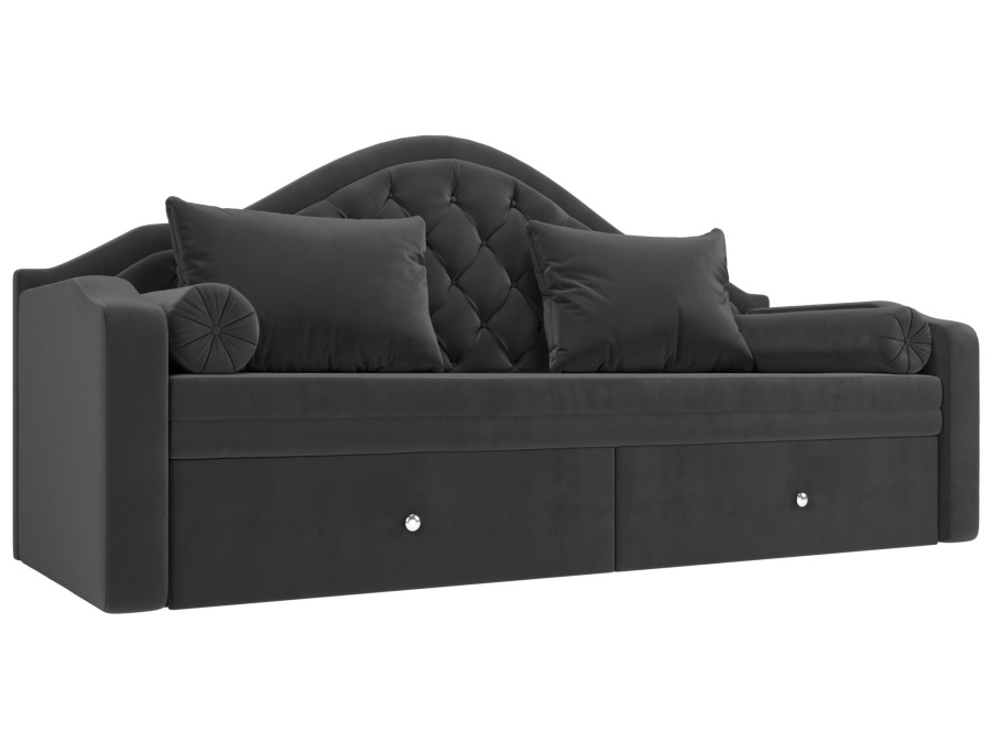 Изящная каретная стяжка на спинке прямого дивана-трансформера Сойер, будет отлично смотреться в помещении, оформленном в стиле кантри, прованс и классик. Приобрести данную модель можно в различных цветовых оттенках.