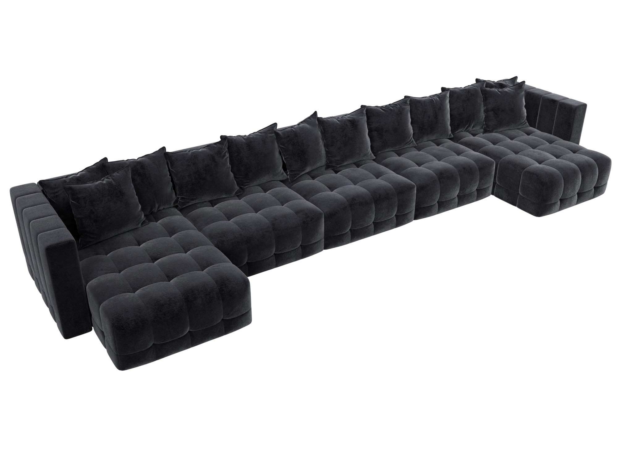 Диван П-образный Лига-052 НПБ МегаЛонг Велюр серый