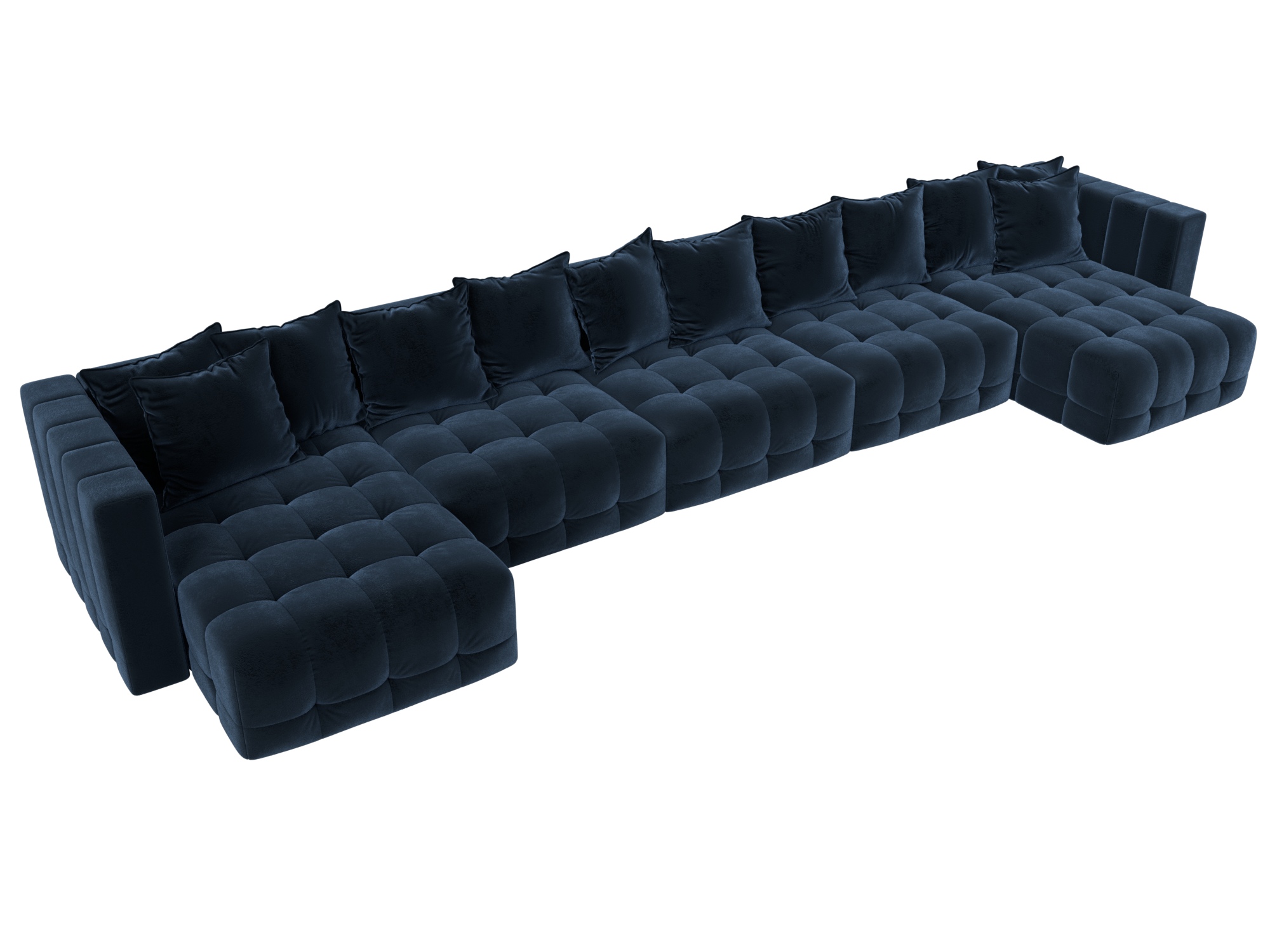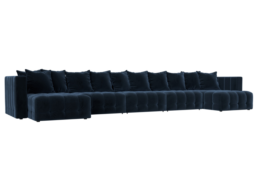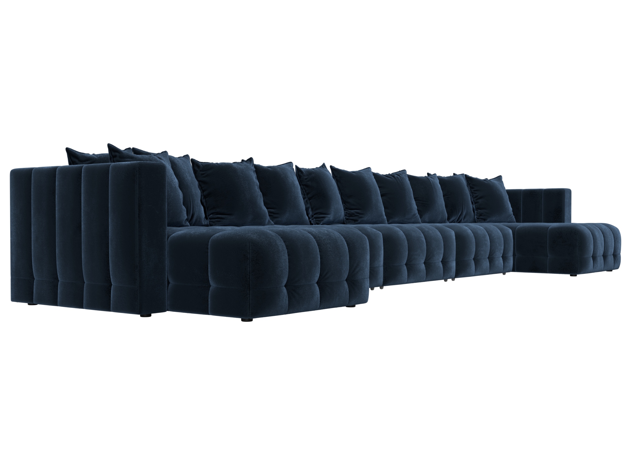 Диван П-образный Лига-052 НПБ МегаЛонг Велюр синий