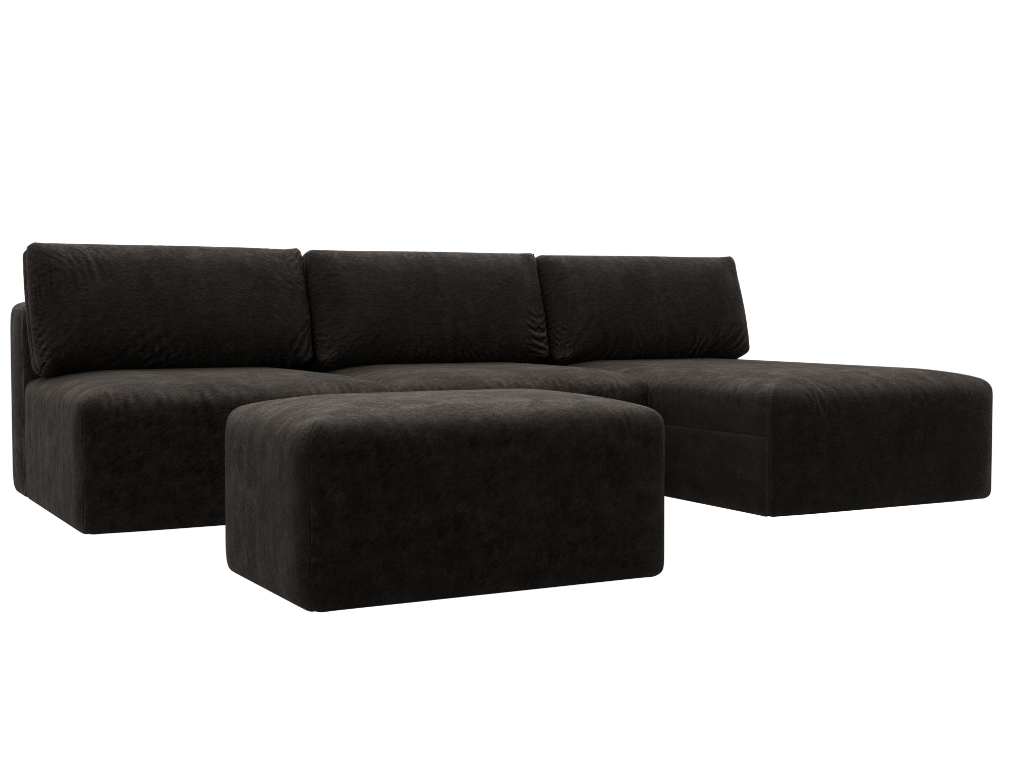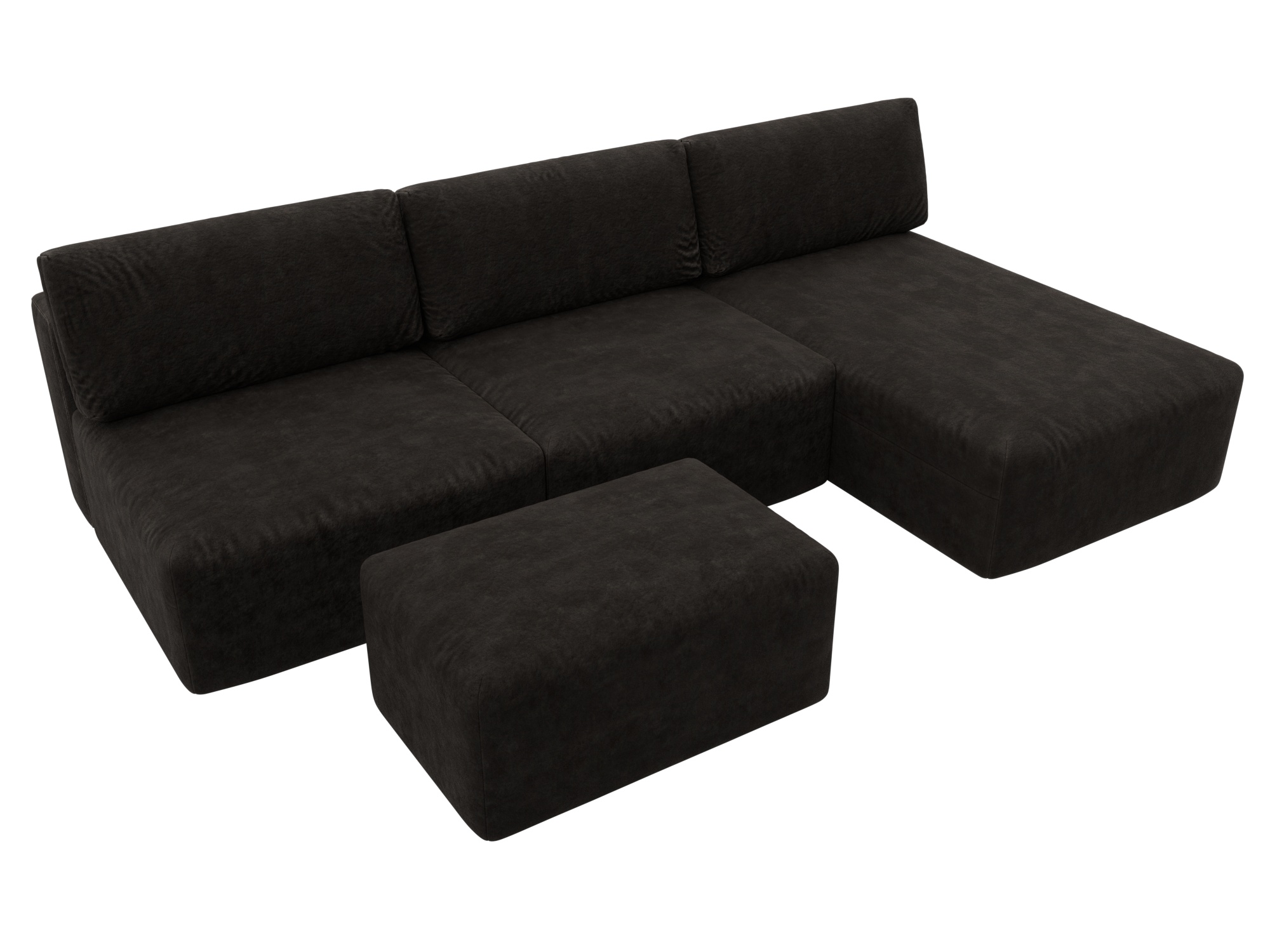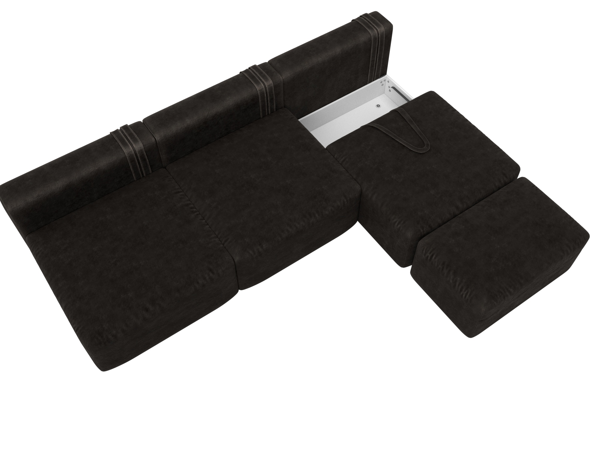 Диван угловой модульный с пуфом Лига-060 НПБ Лонг угол универсальный Велюр коричневый