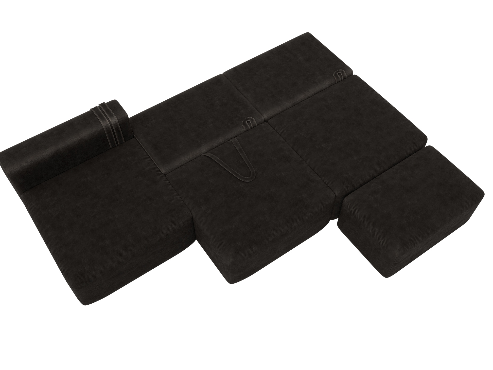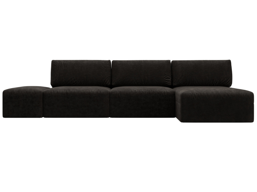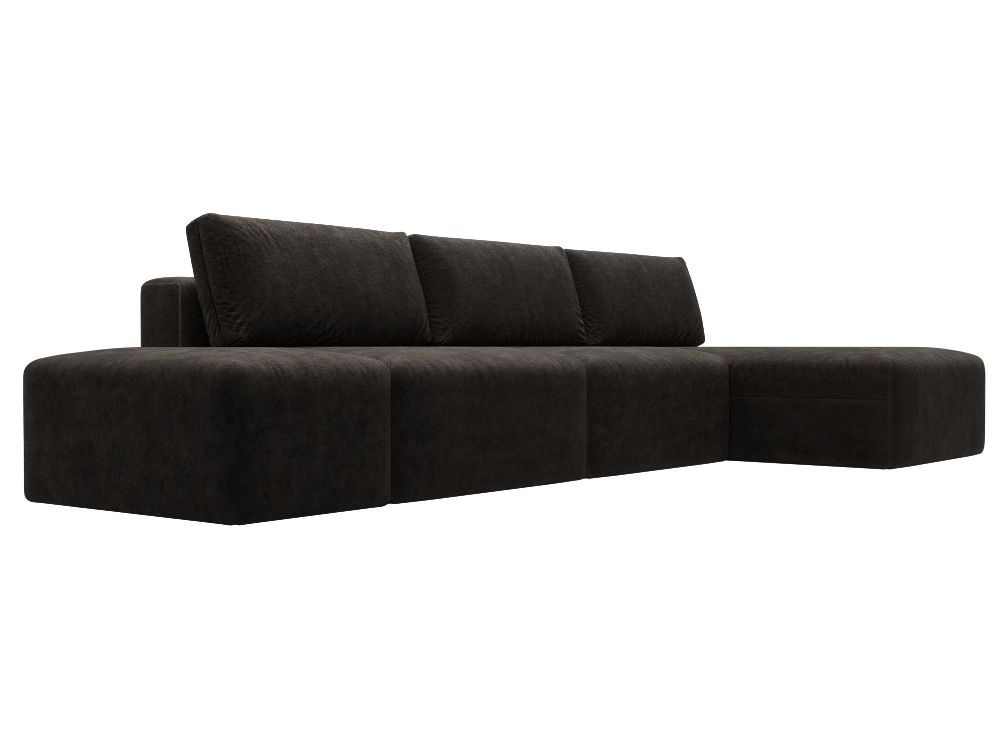 Диван угловой модульный с пуфом Лига-060 НПБ Лонг угол универсальный Велюр коричневый