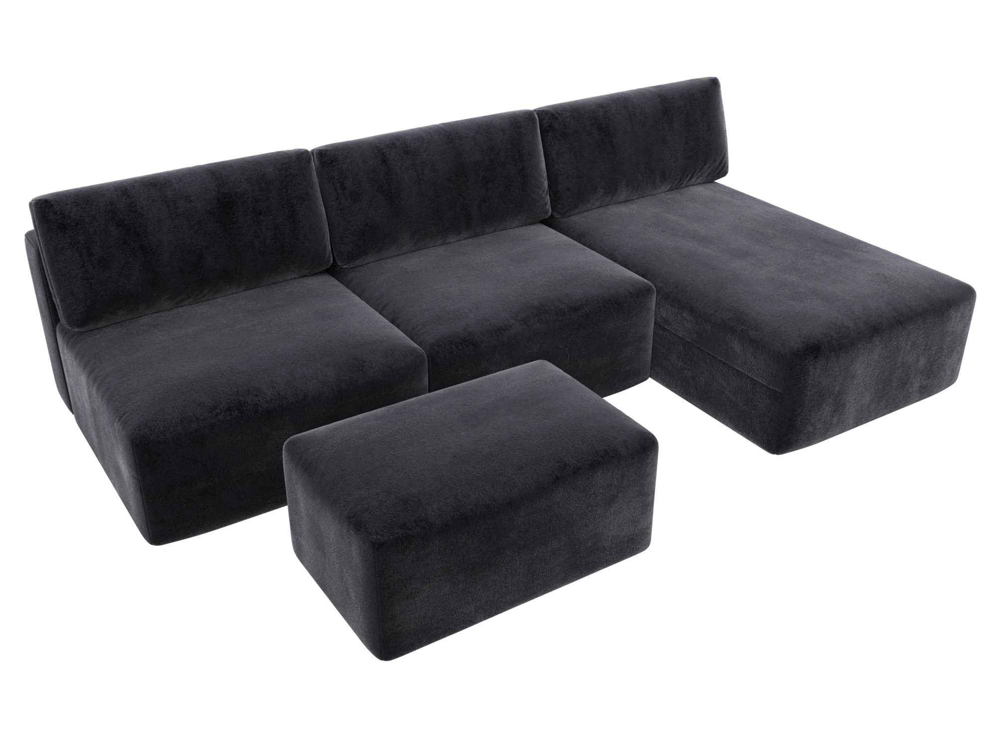 Диван угловой модульный с пуфом Лига-060 НПБ Лонг угол универсальный Велюр серый