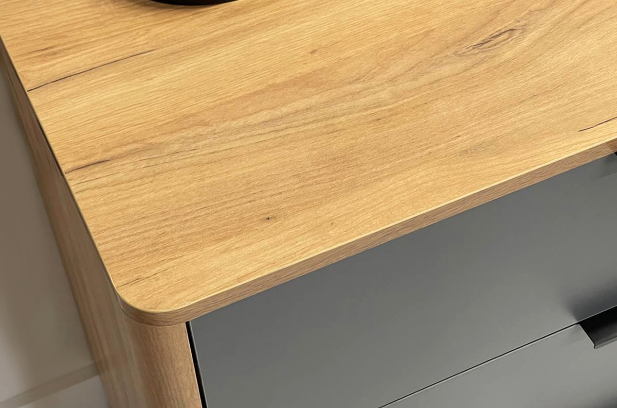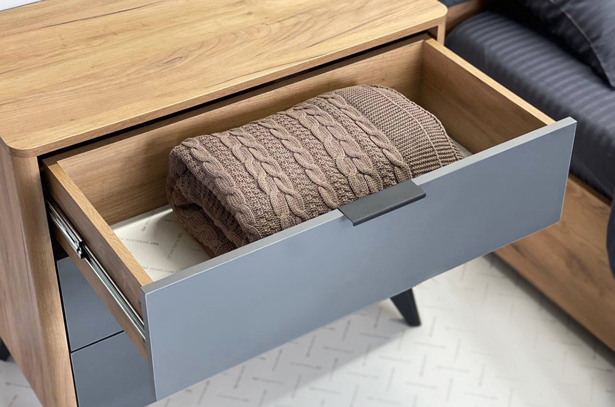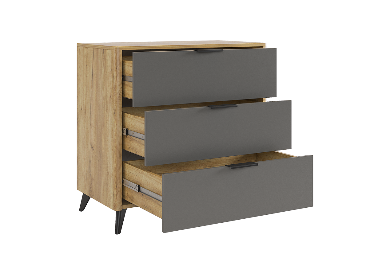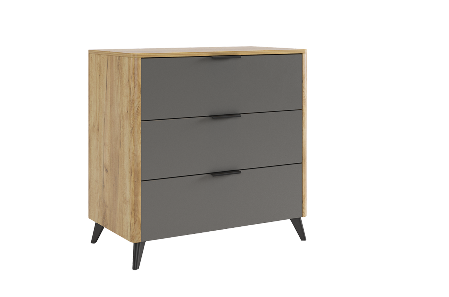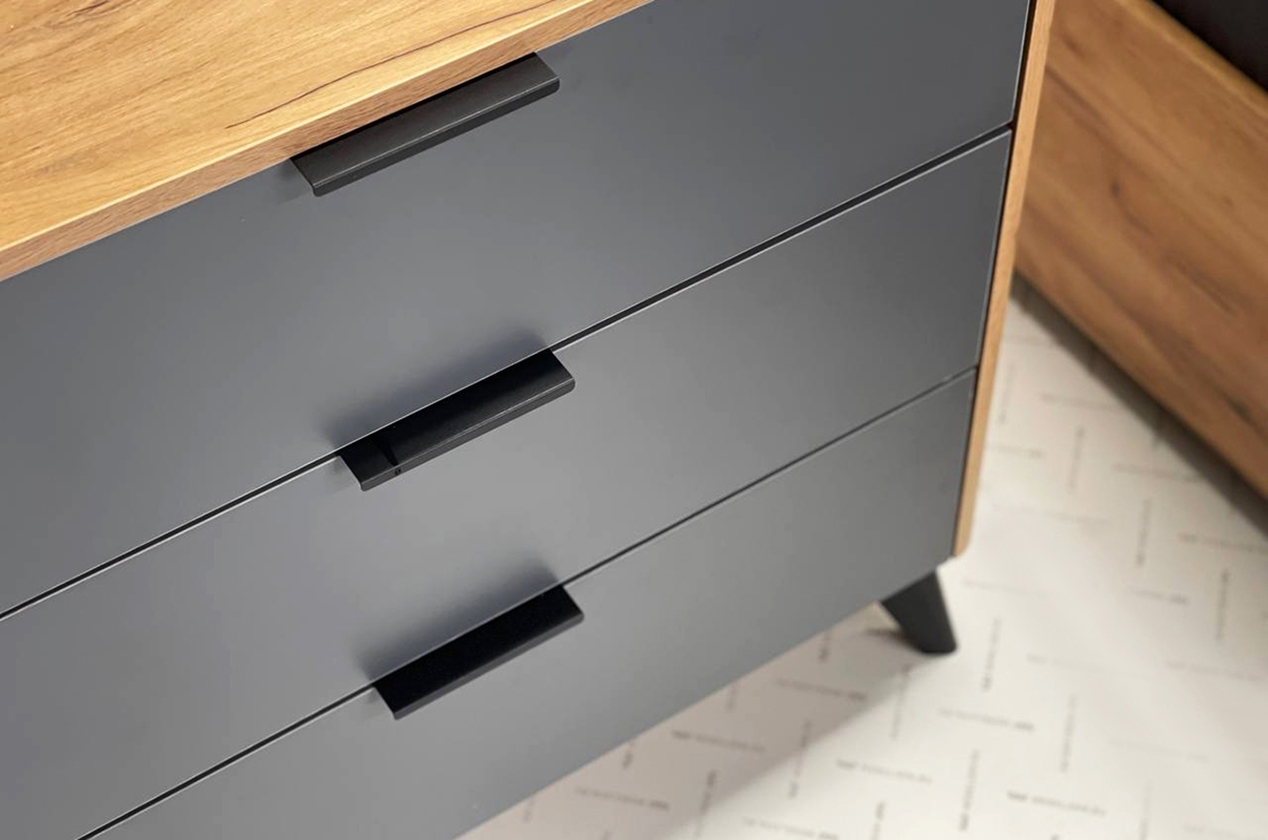 Состоит из: 3-х ящиков. Стильное решение для современного интерьера, комод "Адам". В трех выдвижных ящиках на шариковых направляющих поместятся все личные вещи. Под высокими, лаконичными опорами, легко уберется робот- пылесос и в вашей спальне всегда будет чисто и свежо. Благодаря полукруглым профилям на боковинах комода, вы легко и безболезненно обойдете углы, даже если поставите комод в самое узкое пространство. Комод можно использовать как трюмо, если повесить зеркало сверху. Зеркало приобретается отдельно. Комод отлично сочетается со всеми модулями спальни "Адам".