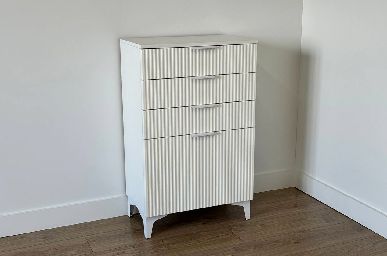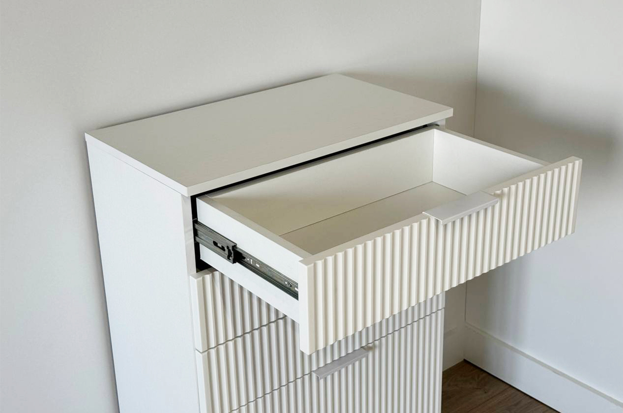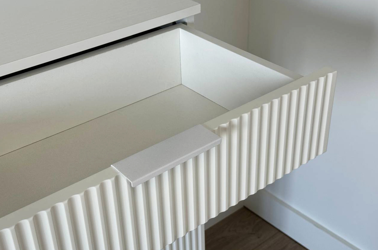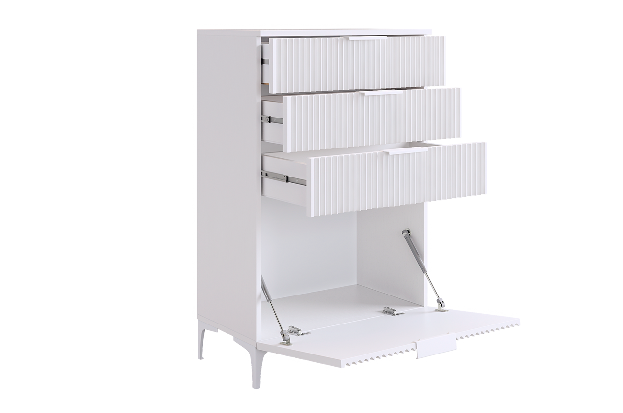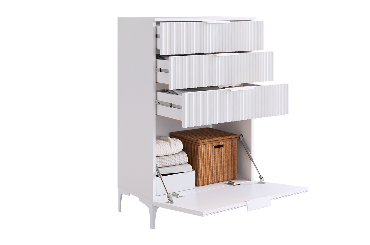 Состоит из: 3-х ящиков и нижней откидной барной секции. Комод «Зефир» — идеальное решение для детской и гостиной комнат. Он оснащён выкатными ящиками и откидной секцией, обеспечивая максимальный комфорт и удобство использования. Фасады украшены изящной фрезеровкой, которая придаёт изделию неповторимый шарм и элегантность. Этот комод станет прекрасным дополнением интерьера и обеспечит надёжное хранение игрушек, книг и других предметов. Комод отлично сочетается со всеми модулями "Зефир".