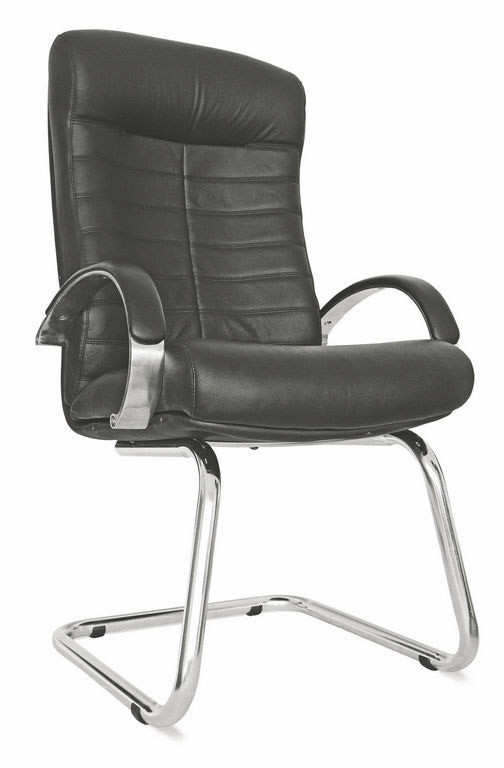 Конференц-кресло КОНСУЛ хром с короткой спинкой, черная кожа
