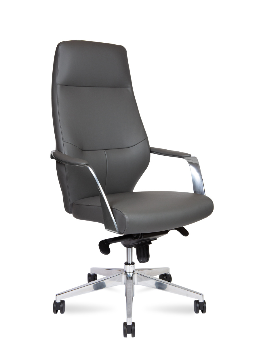 Кресло офисное / Capital Grey / алюминиевая база / серая экокожа