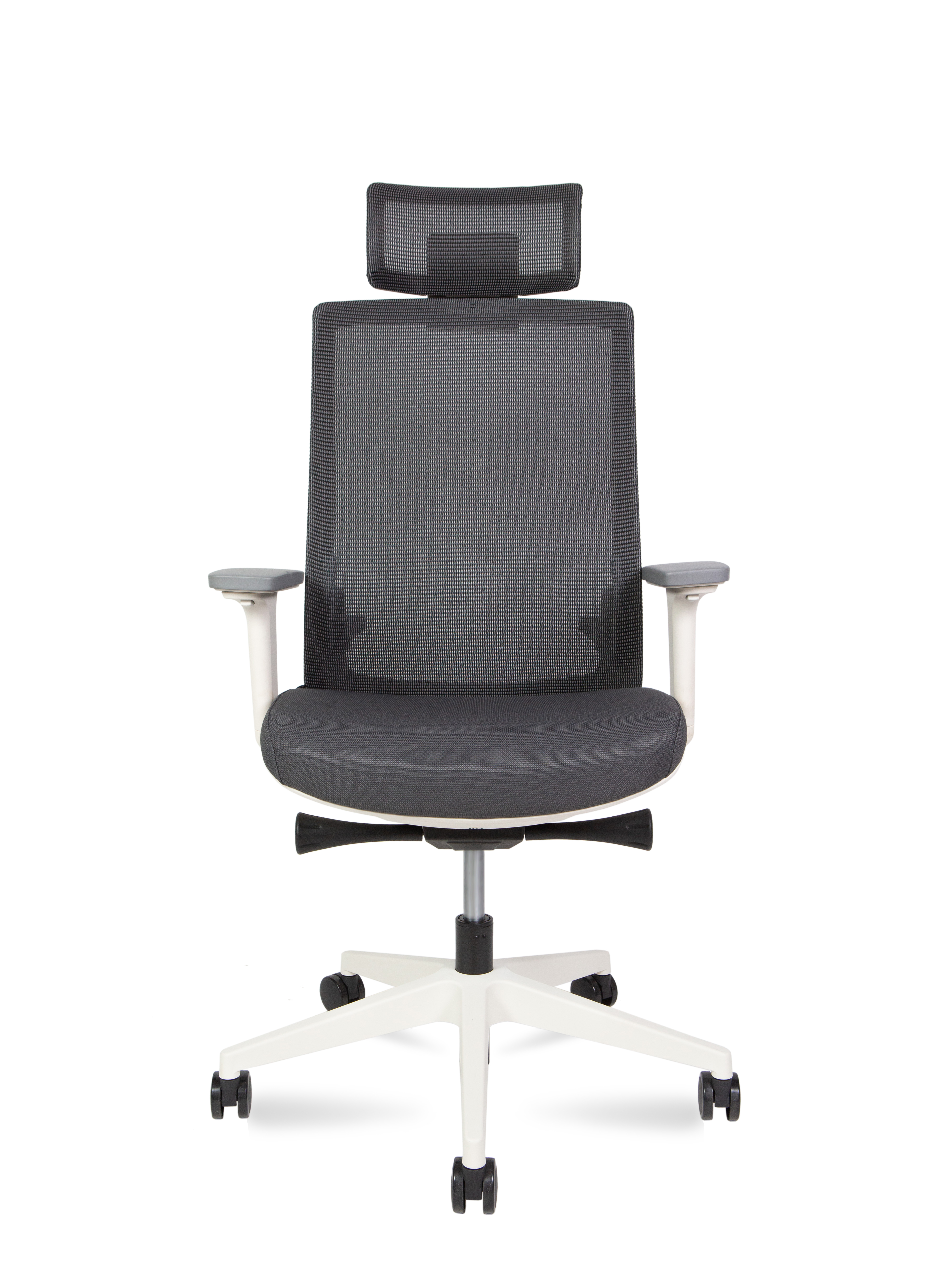 Подлокотники: белые регулируемые 4D, с серой накладкой PU