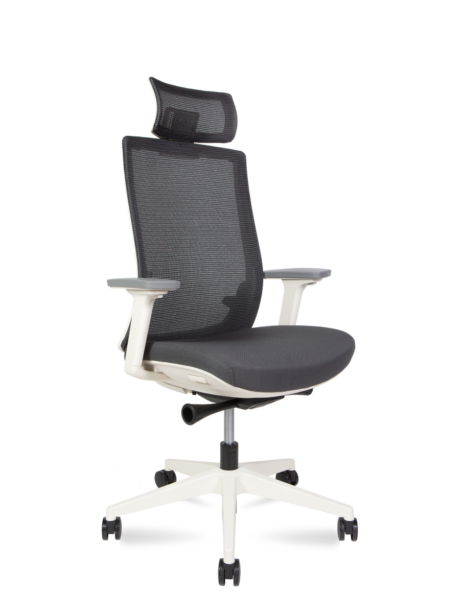 Кресло офисное Ruby / белый пластик / серая сетка / серая ткань