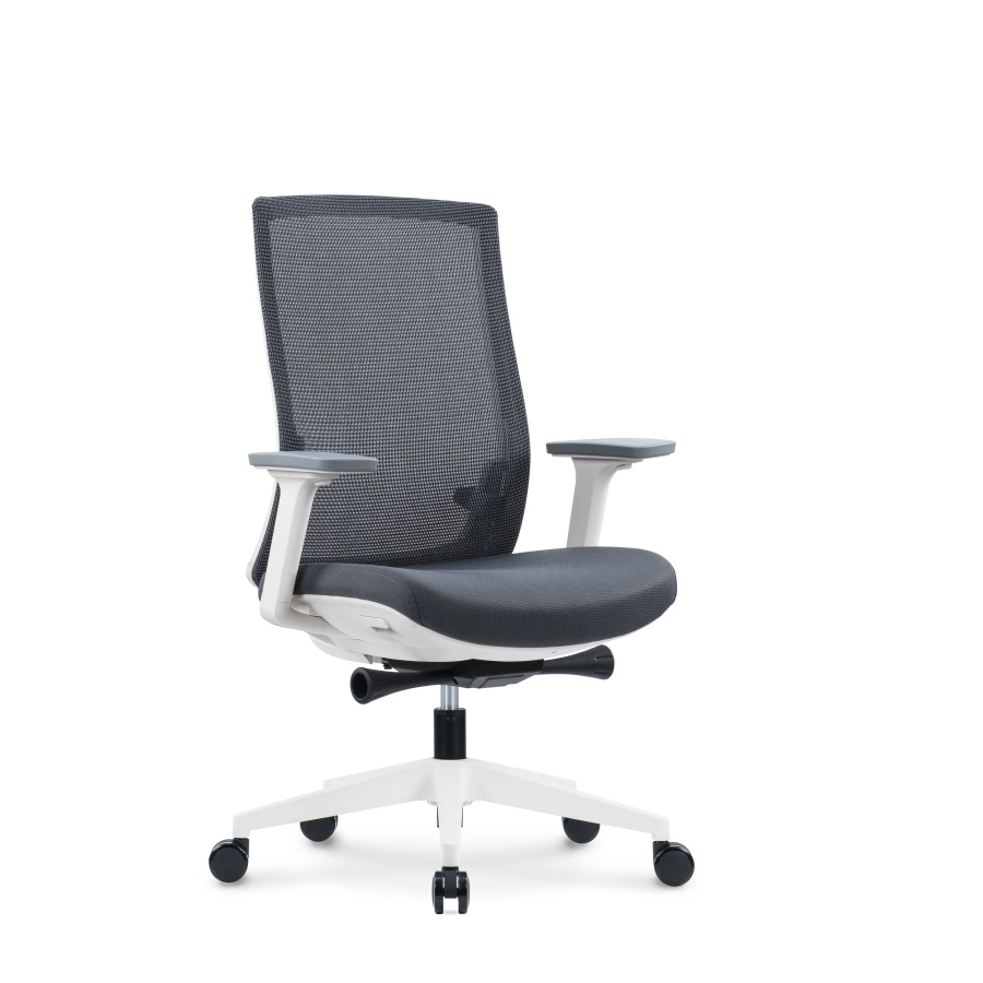 Кресло офисное Ruby LB / белый пластик / серая сетка / серая ткань