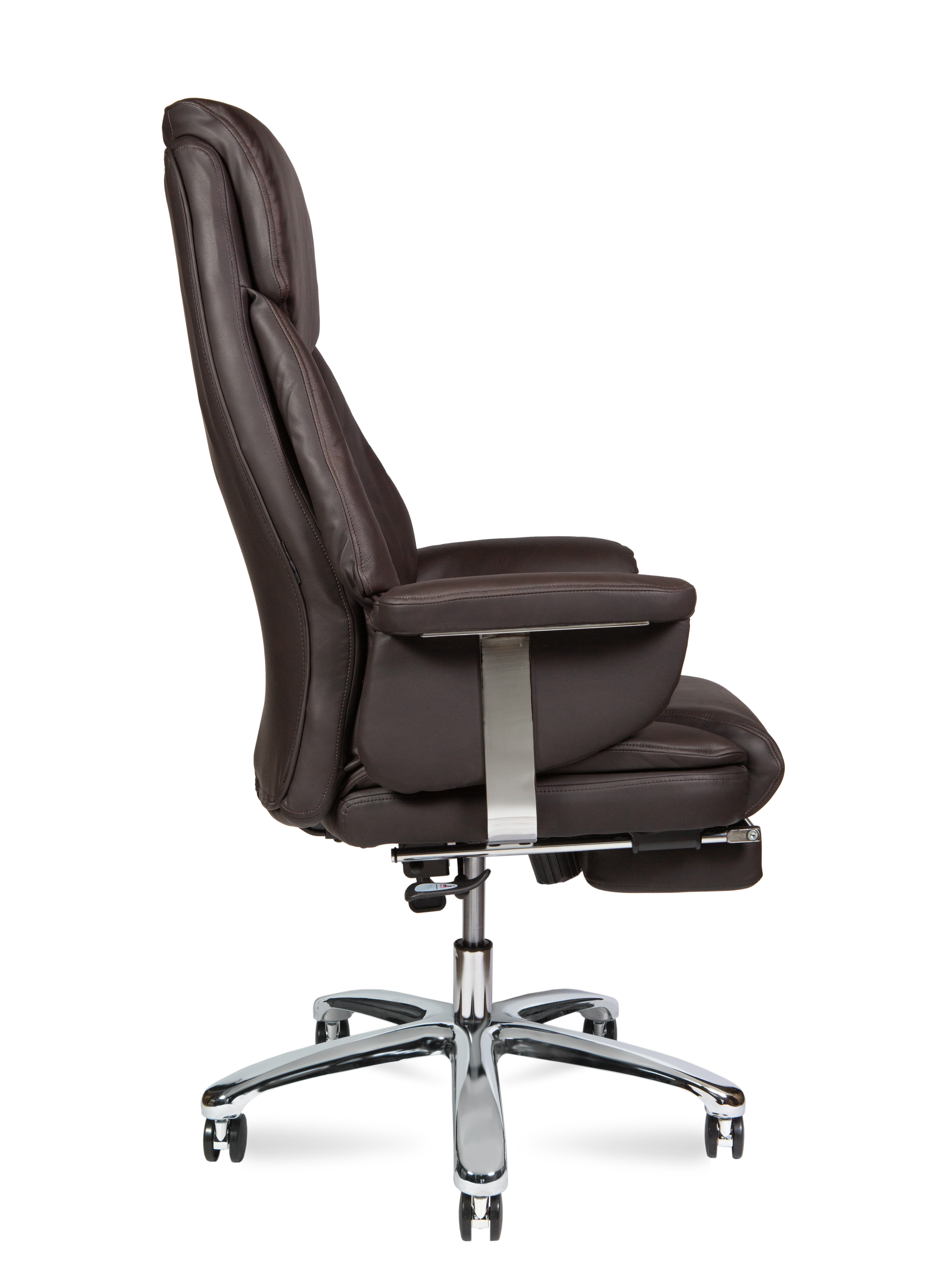 Кресло для руководителя высшего звена в классическом стиле. . Обивка выполнена из высококачественной экокожи. Роскошное кресло также имеет выдвижную опору для ног, которая позволяет принять лежачее положение в минуты отдыха, снимает нагрузку с позвоночника, улучшает кровообращение. Хромированный газ-патрон, ролики с вставкой "хром", хромированные части подлокотника делают модель стильной, с элементами дизайна в стиле хай-тек. Механизм качания мультиблок с возможностью фиксации в любом положении. Кресло подойдет людям высокого роста, плотной комплекции. Максимальная нагрузка 120 кг.