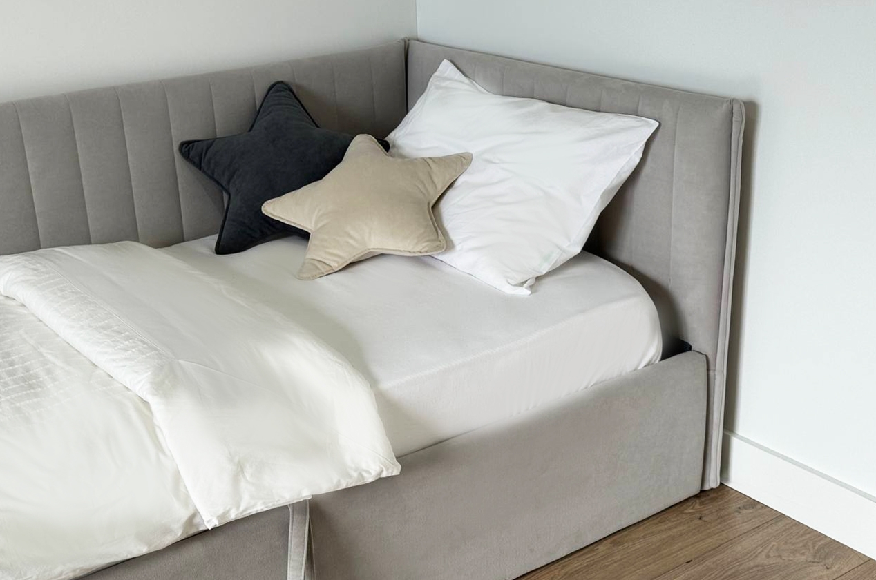 Кровать с подъемным механизмом Твикс (Тахта) 90х200 см – это стильное и функциональное решение для ваших спален и детских комнат. Удобное изголовье, корпус и задняя боковина выполнены в мягком исполнении, что создаёт атмосферу уюта и комфорта.
