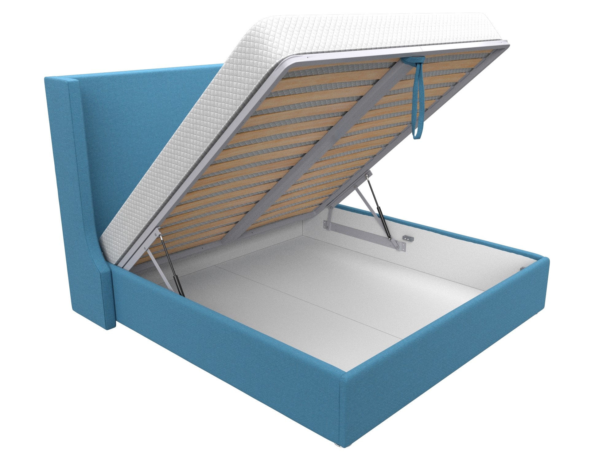 Подъемный механизм: газлифт. Используется для поднятия каркаса с матрасом и открытия бельевого ящика. Изделие простое в использовании, прочное и практичное.