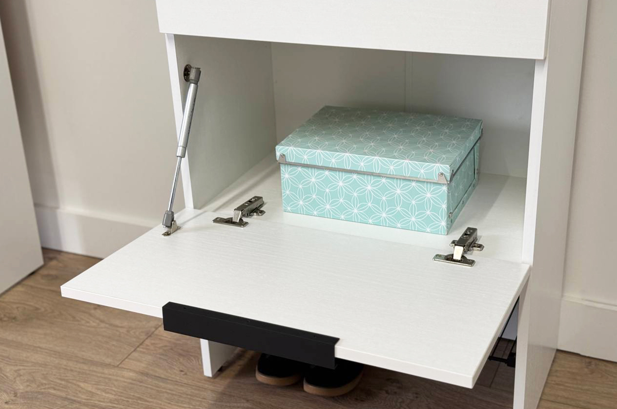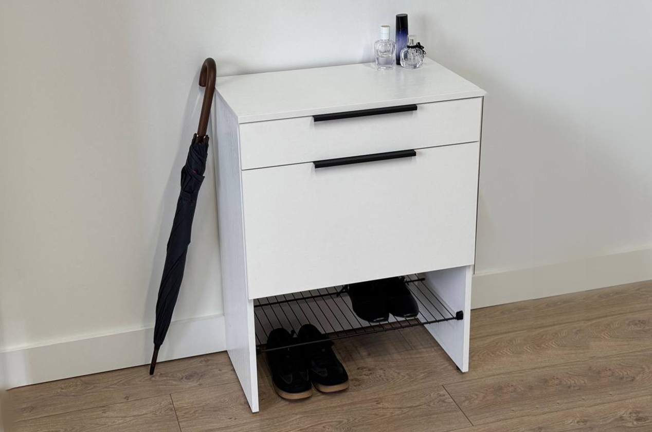 Обувница "Баско" — функциональное и стильное решение для организации вашего пространства. Эта обувница идеально подходит для прихожей, помогая поддерживать порядок и аккуратность. Изготовленная из прочного ЛДСП толщиной 16 мм, обувница обеспечивает надежность и долговечность. Выкатной ящик на шариковых направляющих позволяет легко и плавно открывать и закрывать его, предоставляя дополнительное место для хранения мелочей. Большая секция для хранения открывается с помощью газлифта, что обеспечивает удобный доступ к содержимому и легкость в использовании. Сетчатая полка для обуви позволяет аккуратно разместить обувь, обеспечивая вентиляцию и удобство. Обувница "Баско" сочетает в себе практичность и современный дизайн, становясь незаменимым элементом вашего интерьера.