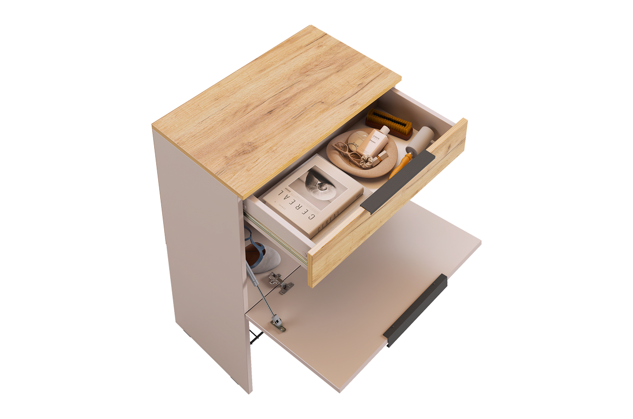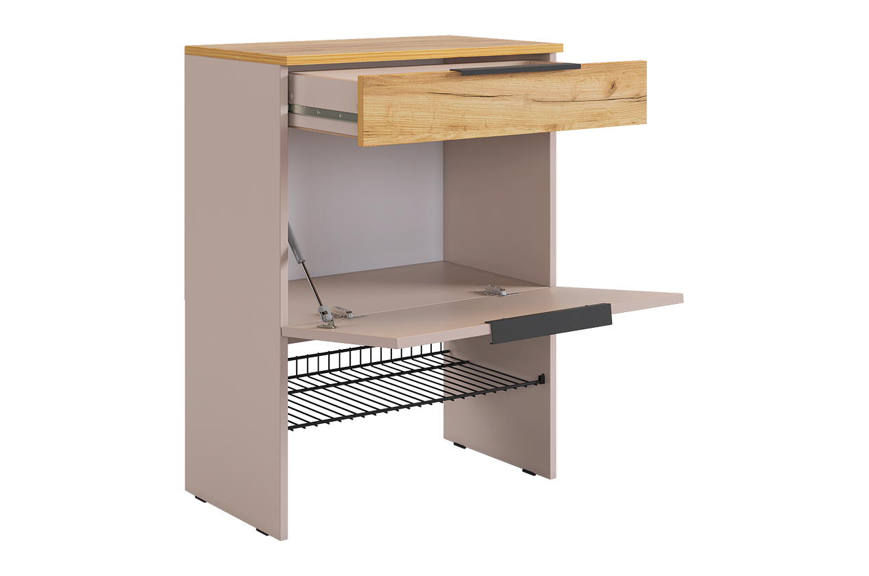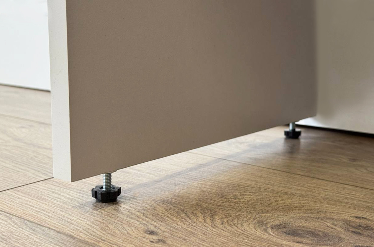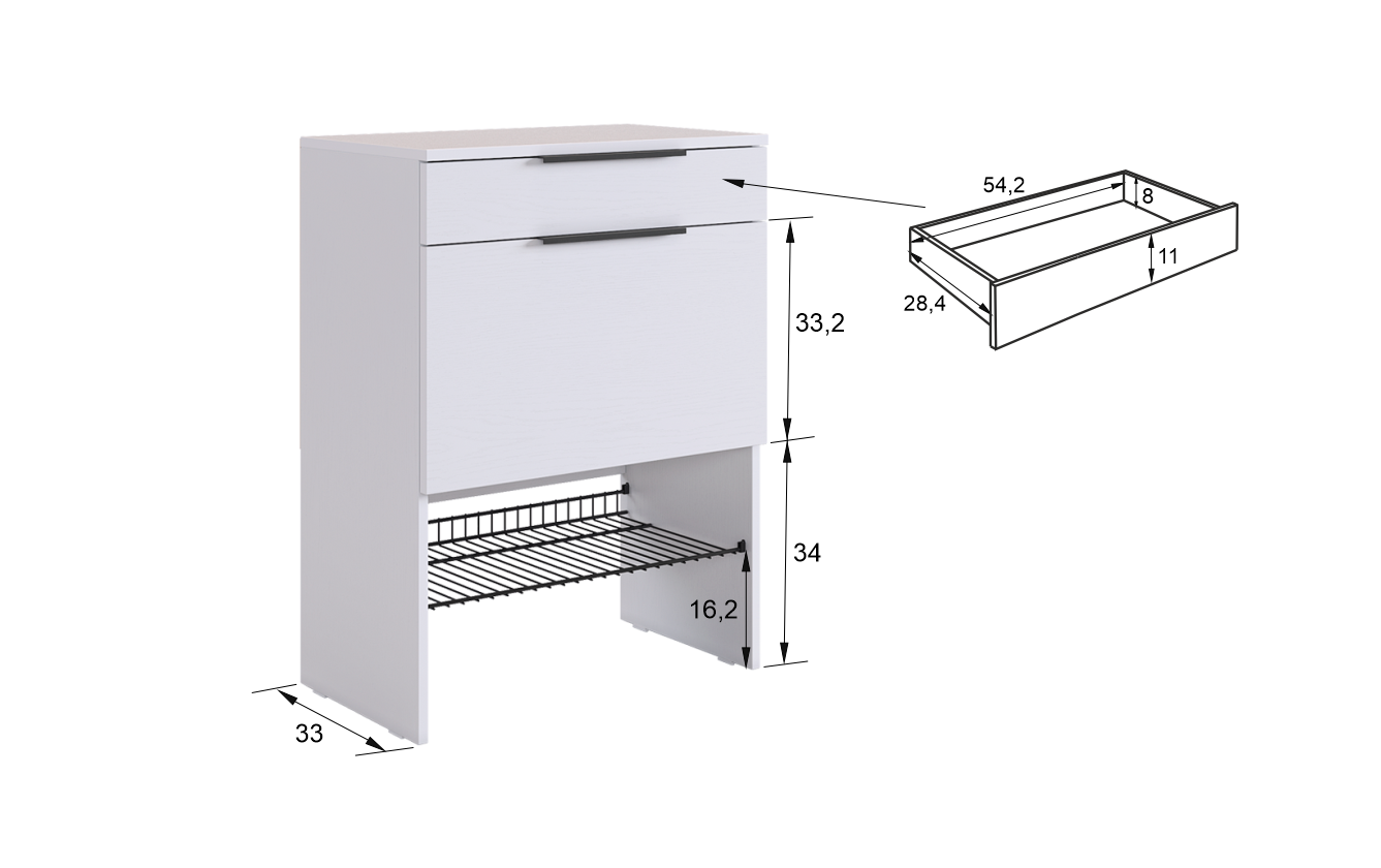 Изготовленная из прочного ЛДСП толщиной 16 мм, обувница обеспечивает надежность и долговечность. Выкатной ящик на шариковых направляющих позволяет легко и плавно открывать и закрывать его, предоставляя дополнительное место для хранения мелочей.