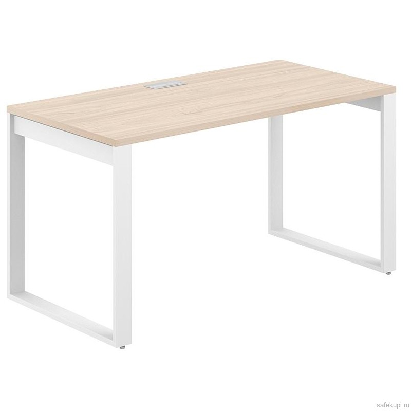 Стол Allegro 1400х700х750 / профиль О-образный: 70х20 белый; лючок: серебро; столешница: акация равелло