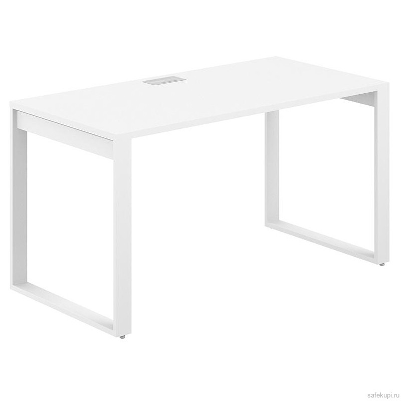 Стол Allegro 1400х700х750 / профиль О-образный: 70х20 белый; лючок: серебро; столешница: белый