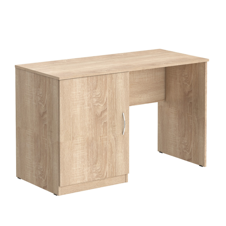 Универсальный стол с тумбой KANN подойдет для использования в гостинице или дома. Размеры - 1200х550х750 мм, тип - левосторонний, цвет – Дуб Сонома Светлый. Стол оснащен надежной столешницей из ЛДСП 16 мм. Тумба предназначена для размещения холодильника. На дверце установлена стильная металлическая ручка. Конструкция оснащена прочными силовыми креплениями – эксцентриковыми стяжками. Все торцы основных элементов надежно защищены кромкой ПВХ – 2 мм. Регулируемые по высоте опоры обеспечат столу устойчивость на неровном полу.