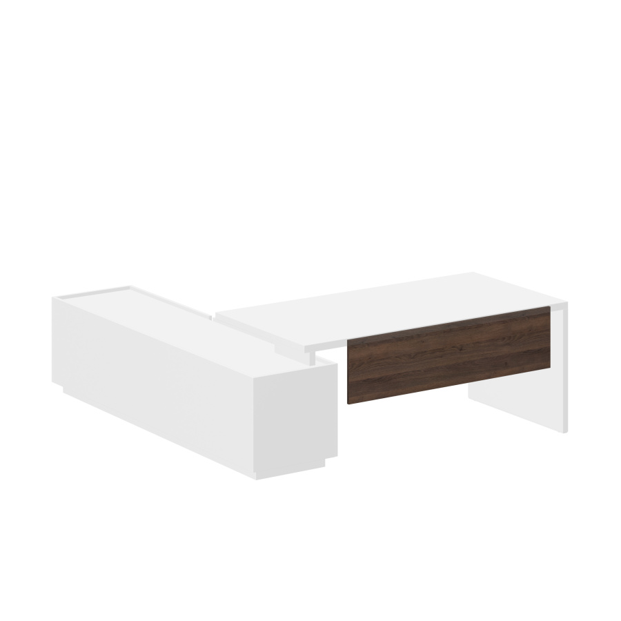 Представляем вам кабинет руководителя Oliver, разработанный с учетом современных трендов в дизайне офисных пространств. Особенность кабинета OLIVER — акценты премиальной мебели: тонкие алюминиевые планки и европейская высота шкафов (1520 мм). Особую эстетику кабинету придают сочетания натуральных древесных текстур фасада с элементами серого оникса и алюминия. Эффективная организация хранения: наличие секретера в группе шкафов. Эстетичное размещение кабелей, которое можно осуществить прямо через ножки или через кабель канал. Возможность использования тумбы как греденция позволяет организовать стилистически однородный офиc.