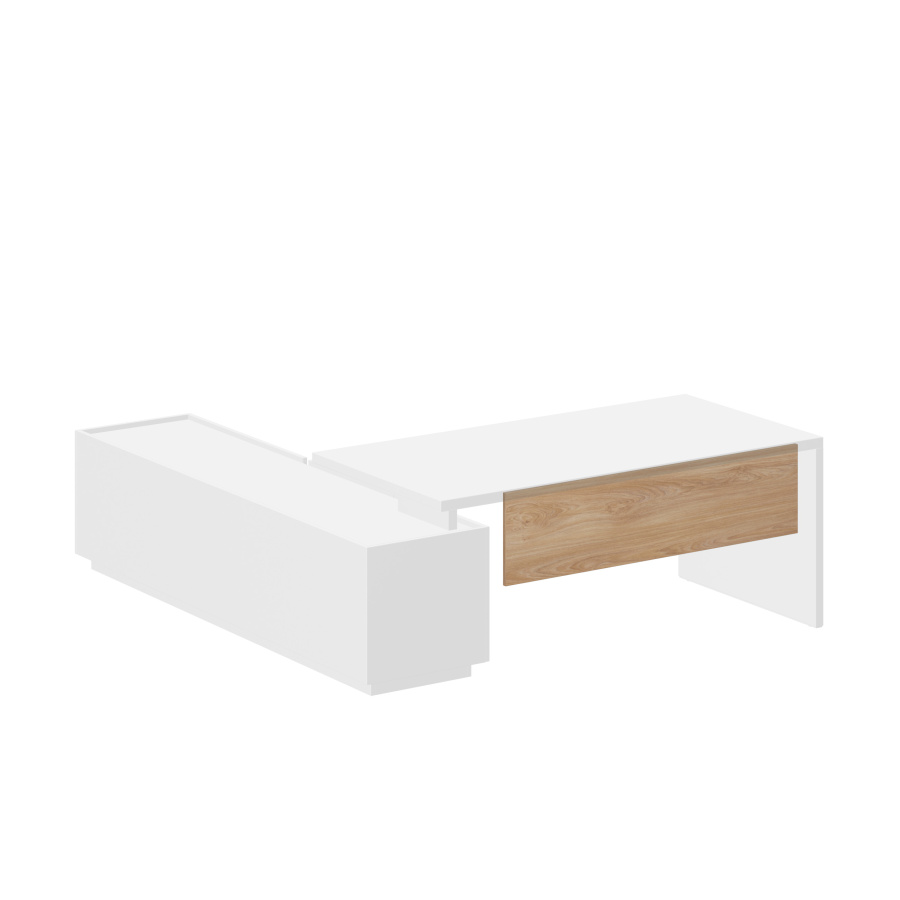Представляем вам кабинет руководителя Oliver, разработанный с учетом современных трендов в дизайне офисных пространств. Особенность кабинета OLIVER — акценты премиальной мебели: тонкие алюминиевые планки и европейская высота шкафов (1520 мм). Особую эстетику кабинету придают сочетания натуральных древесных текстур фасада с элементами серого оникса и алюминия. Эффективная организация хранения: наличие секретера в группе шкафов. Эстетичное размещение кабелей, которое можно осуществить прямо через ножки или через кабель канал. Возможность использования тумбы как греденция позволяет организовать стилистически однородный офиc.