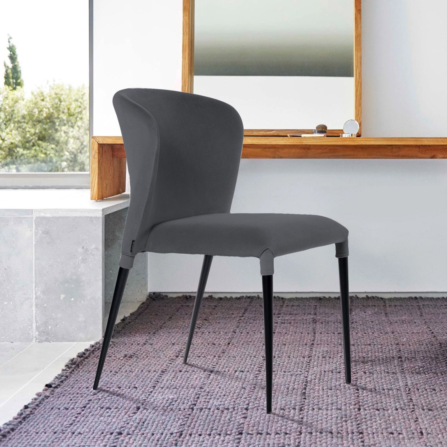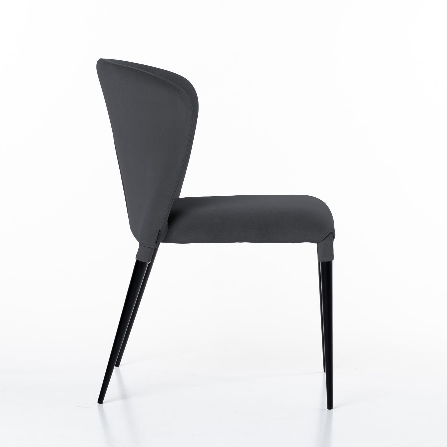 Изюминка стула Albert – невероятно тонкие металлические ножки черного матового цвета, излишне скошенные назад, как часть дизайнерской задумки. На ножках предусмотрены специальные пластиковые накладки, которые придают стулу дополнительную устойчивость и защищают пол от царапин.
