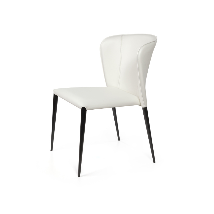 Изюминка стула Albert – невероятно тонкие металлические ножки черного матового цвета, излишне скошенные назад, как часть дизайнерской задумки. На ножках предусмотрены специальные пластиковые накладки, которые придают стулу дополнительную устойчивость и защищают пол от царапин.
