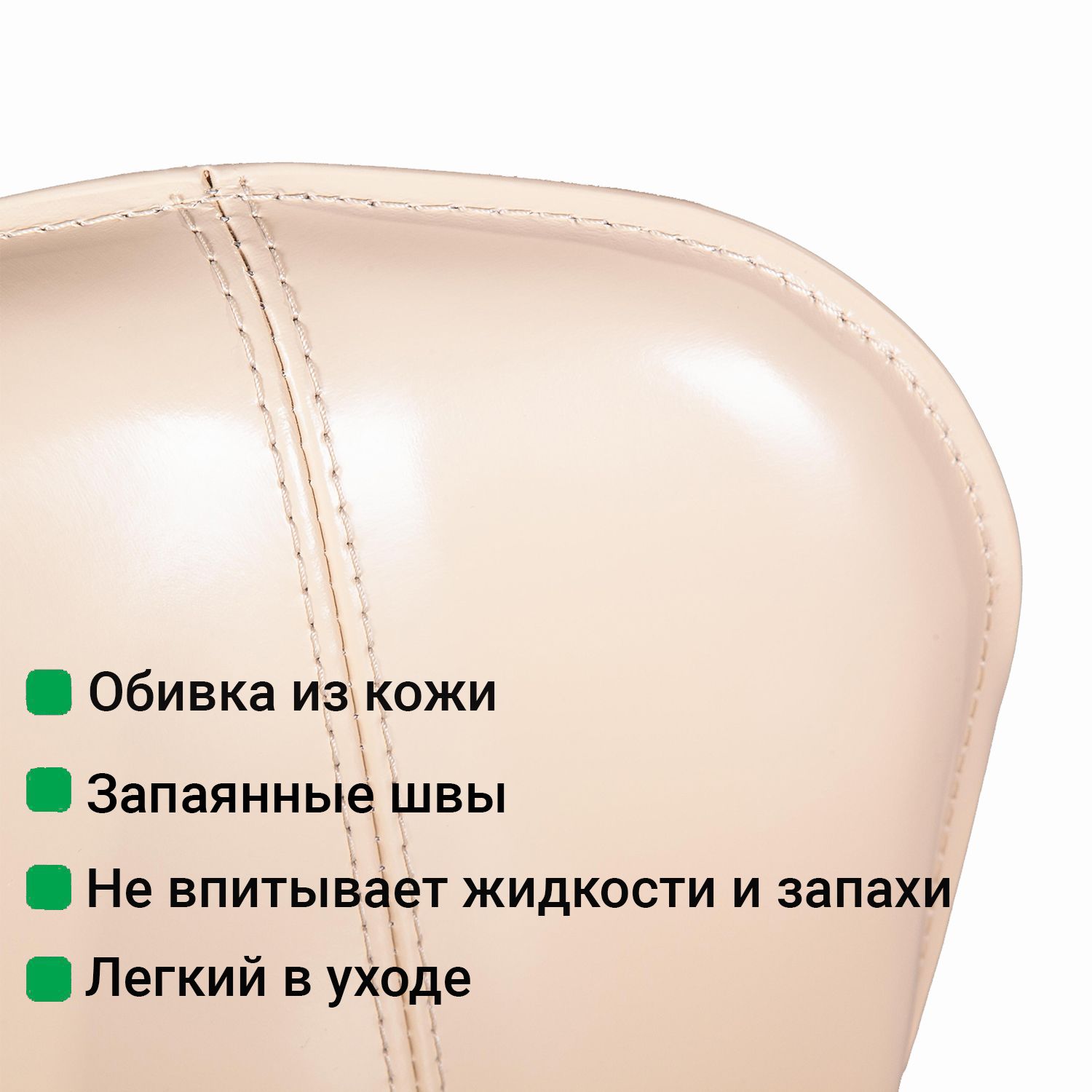 Обивка стула выполнена в регенерированной коже – обивочном материале, который сделан путём переплетения расщеплённых волокон натуральной кожи. В состав модифицированной кожи также входят полимеры и специальные дубильные добавки.