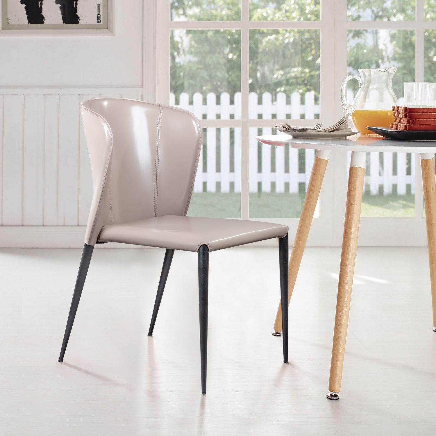 Изюминка стулаAlbert – невероятно тонкие металлические ножки черного матового цвета, излишне скошенные назад, как часть дизайнерской задумки. На ножках предусмотрены специальные пластиковые накладки, которые придают стулу дополнительную устойчивость и защищают пол от царапин.