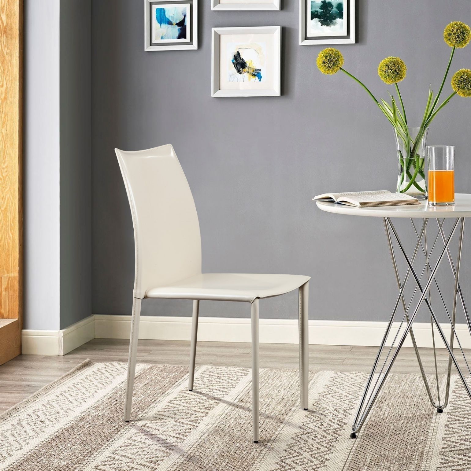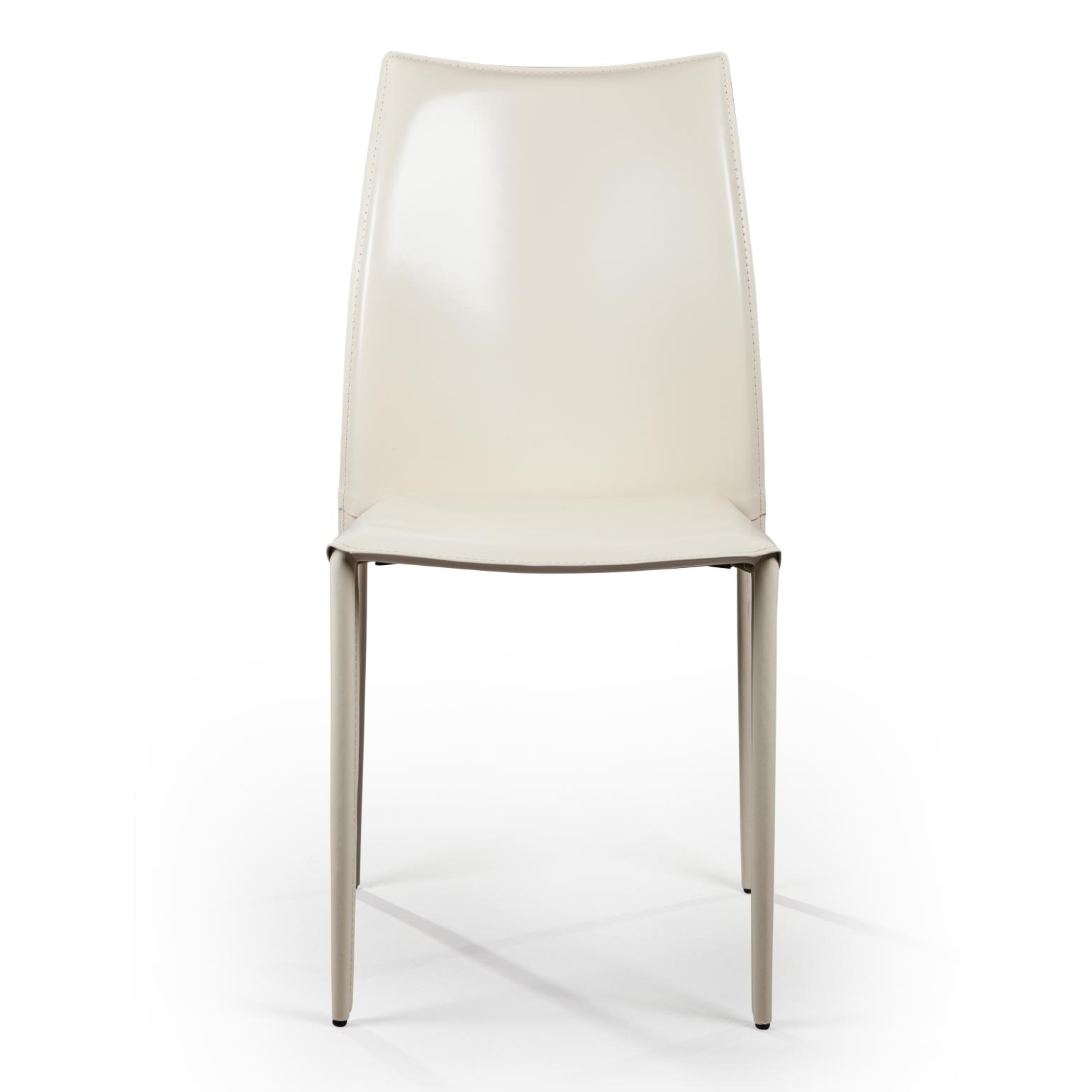 Крепкие металлические ножки скрыты под натуральной кожей такого же цвета, как и сам стул, благодаря этому создается лаконичный образ единого целого. На ножках предусмотрены специальные пластиковые накладки, которые придают стулу дополнительную устойчивость и защищают пол от царапин.