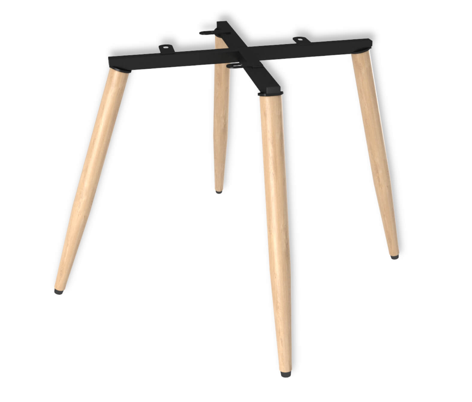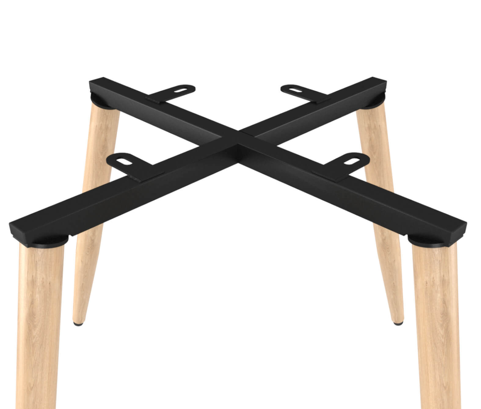 Ножки каркаса выполнены из натурального дерева (бук), на котором отчетливо видна текстура дерева. Верхняя крестовина каркаса с приваренными фланцами выполнена из квадратной трубы. Максимальная статическая нагрузка на каркас – 200 кг.