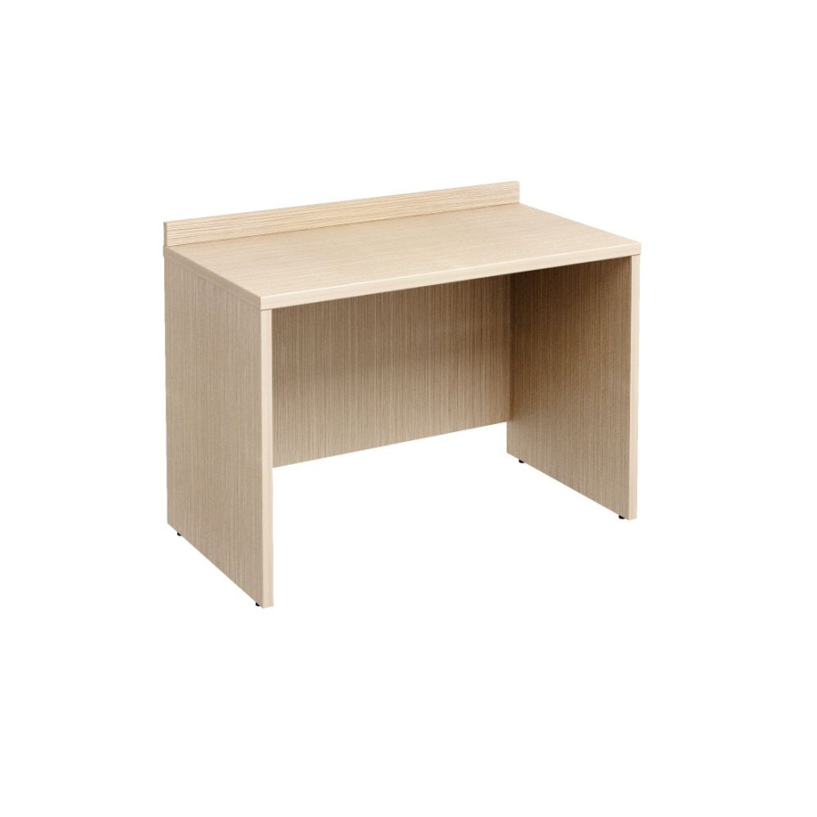 Стол рабочий КР 610 – изделие шириной 110, глубиной 60 и высотой 82 см. Прямоугольная крышка стола выполнена из ЛДСтП «зебрано песочный» толщиной 32 мм и облицована по периметру кромкой ПВХ толщиной 2 мм в цвет ЛДСтП. Крышка установлена на две опоры из ЛДСтП «зебрано песочный» толщиной 25 мм. Долевые (длинные) торцы опор облицованы кромкой ПВХ толщиной 2 мм в цвет ЛДСтП. Свесы столешницы относительно опор составляют 2 мм с каждой стороны. Опоры соединены между собой экраном, расположенным на высоте 11 см от пола. Заподлицо с тыльным торцом крышки, сверху ее, вертикально расположена планка высотой 6 см, которая служит ограничителем. Планка выполнена из ЛДСтП «зебрано песочный» толщиной 25 мм и облицована кромкой ПВХ толщиной 2 мм в цвет ЛДСтП. Стол стоит на четырех врезных металлических опорах высотой 120 мм с максимальной нагрузкой на каждую до 100 кг и возможностью регулировки до 25 мм.