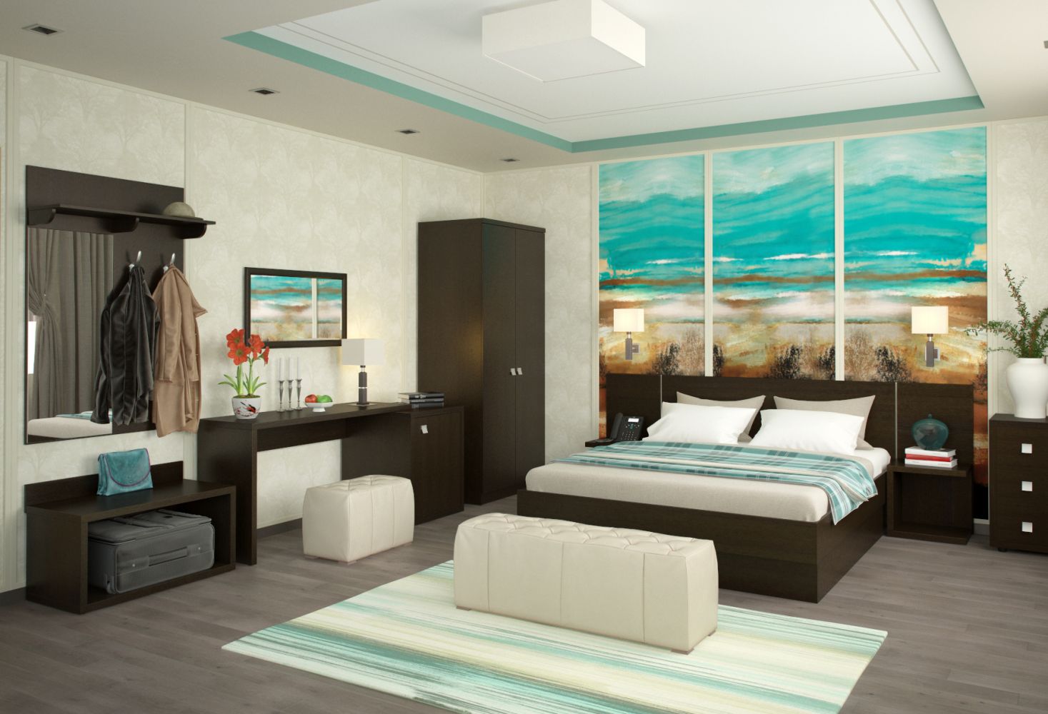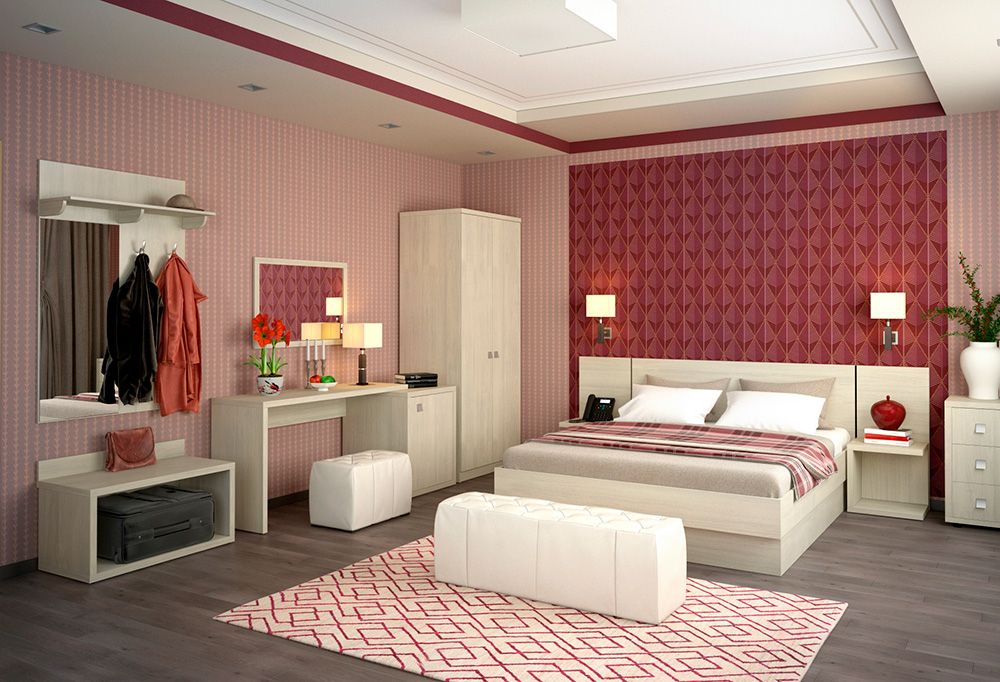 Кровати: каркас кровати изготовлен из ДСП 18 мм. Изголовье кровати навесное изготовлено из ЛДСП 25 мм. Нижний торец изголовья облицован синтетической кромкой, остальные три – кромкой ПВХ 2 мм в цвет ЛДСП.