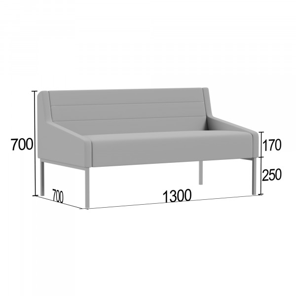 Каркас: Калиброванный брус 30Х40 мм массив хвойных пород древесины 8-12% влажности; ДСП 16 мм; ДВП 3,2 мм влагостойкий; картон прессованный 1,75 мм; при помощи каркасных пневмописталетов (созданных для интенсивных производств с качественно подготовленным воздухом), а так же каркасной скобой 50мм с клеем (с высокими крепёжными свойствами). Это позволяет надежно скрепить дерево, фанеру, ДВП, ДСП, ЛДСП и обеспечивает практически неразборность соединений и отсутствие рекламаций.Чехол: Чехол изготавливается по проработанным, выверенным по дизайну лекалам. Для избежание отклонений или брака чехлов лекала создаются из специальных высокопрочных материалов.Пошив чехлов осуществляется Колонковыми одно и двух игольными швейными машинками с тройным продвижением с равномерной амплитудой подачи материалов. Так обеспечивается получение идеально ровной по всей длине шва строчки. А так же, благодаря компенсирующей лапке со встроенным направителем середины шва- достигается стабильная натяжка ниток и равномерное расстояние между строчками.Сиденье: наполнитель пенополиуритан 20 мм, 30 мм, 50 мм ST2536 плотностью 25 кг/м³, жесткость 3,6 Кпа; техническая ткань спанбонд 100 гр./м² (обивка дна)Спинка: наполнитель пенополиуритан 10 мм и 30 мм ST2536 плотностью 25 кг/м³, жесткость 3,6 Кпа;декоративное оформление горизонтальные отсроченные швы Подлокотники: наполнитель пенополиуритан10 мм, 20 мм ST2536 плотностью 25 кг/м³, жесткость 3,6 КпаОпоры: цвет черный или серый; материал металлическая труба 30х30 мм; высота 250 мм; возможность регулировки отсутствует; монтаж не требуетсяУпаковка: спанбонд 17, пленекс, двухслойный картон, пленка полиэтиленовая. Одноразовый фирменный скотч,исключающий несанкционированную переупаковку.Допустимая нагрузка — до 120 кг на одно посадочное место.