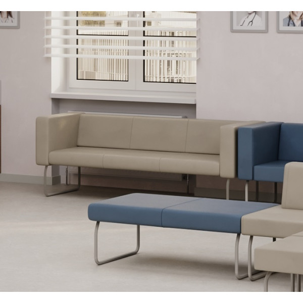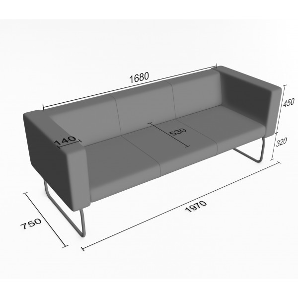 Каркас: калиброванный брус 30х40 мм массив хвойных пород древесины 8-12% влажности, ДСП 16 мм, ДВП 3,2 мм влагостойкий, картон прессованный 1,75 мм скрепляются при помощи каркасных пневмописталетов (созданных для интенсивных производств с качественно подготовленным воздухом), а так же каркасной скобой 50 мм с клеем (с высокими крепёжными свойствами). Это позволяет надежно скрепить дерево, фанеру, ДВП, ДСП, ЛДСП и обеспечивает практически неразборность соединений и отсутствие рекламаций.Чехол: изготавливается по проработанным, выверенным по дизайну лекалам. Во избежание отклонений или брака чехлов лекала создаются из специальных высокопрочных материалов. Пошив чехлов осуществляется колонковыми одно- и двух игольными швейными машинками с тройным продвижением с равномерной амплитудой подачи материалов. Так обеспечивается получение идеально ровной по всей длине шва строчки. Дополнительно, благодаря компенсирующей лапке со встроенным направителем середины шва, достигается стабильная натяжка ниток и равномерное расстояние между строчками.Сиденье: наполнитель — пенополиуритан 20 мм, 30 мм, 50 мм ST2536 плотностью 25 кг/м³, жесткость 3,6 кПа, техническая ткань — спанбонд 100 г/м² (обивка дна).Спинка: наполнитель — пенополиуритан 10 мм и 30 мм ST2536 плотностью 25 кг/м³, жесткость 3,6 кПа.Подлокотники: наполнитель — пенополиуритан10 мм, 20 мм ST2536 плотностью 25 кг/м³, жесткость 3,6 кПа.Опоры: цвет — черный или серый, материал — металлическая труба диаметром 20 мм, высота — 310 мм, возможность регулировки — отсутствует, тип крепления — накладная площадка, монтаж — не требуется.Упаковка: многослойная защита: спанбонд 17, пленекс, двухслойный картон, полиэтиленовая пленка, фирменный одноразовый скотч, исключающий несанкционированную переупаковку.Допустимая нагрузка: до 120 кг на одно посадочное место.