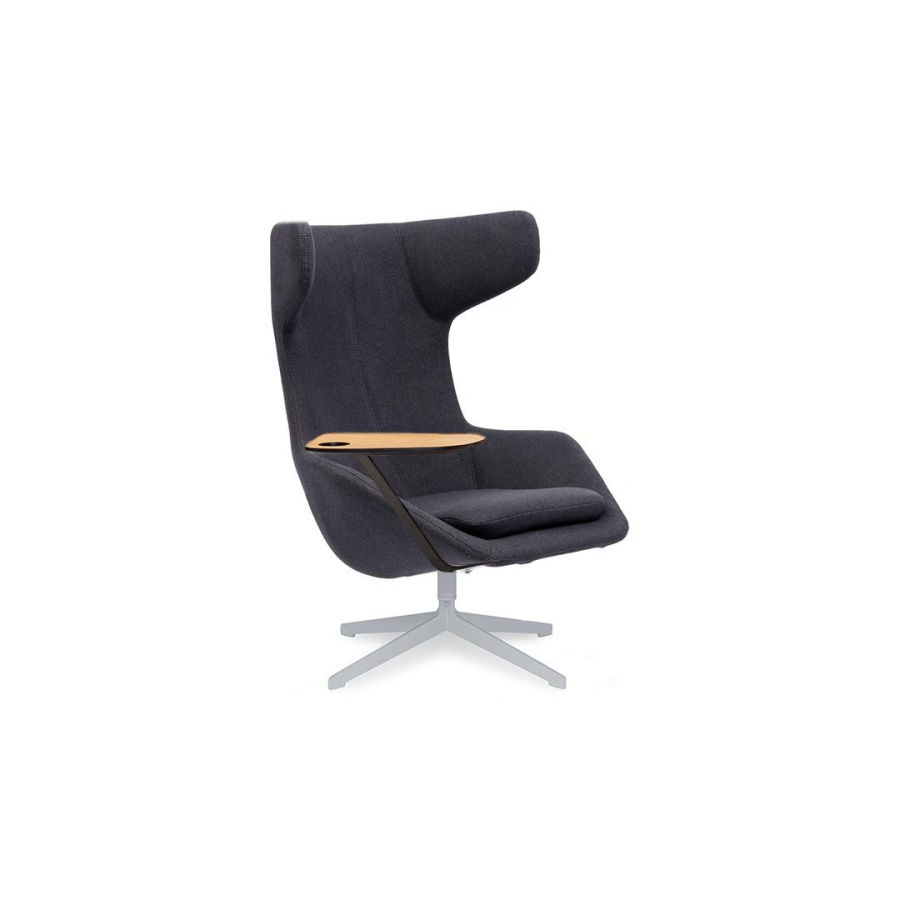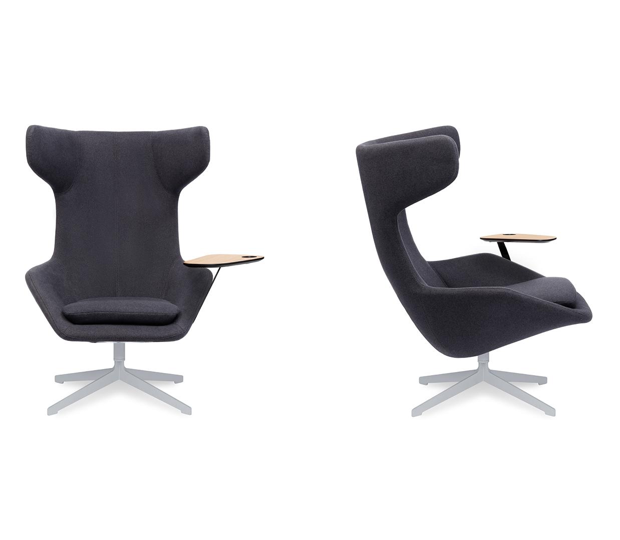 Обивка: ткань, экокожа, кожа Опора: четырехлучевая стальная опора серого цвета, по запросу возможно окрашивание в цвета по RAL Столик: стандарные варианты - пластик Lemark 006SH (белый), 0010SH (черный). Возможно изготовление за дополнительную оплату столиков в другом цвете из колоркарты Lemark.