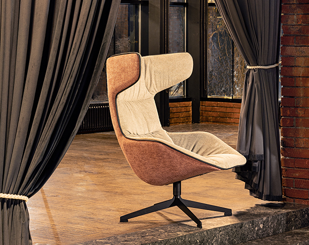 Обивка: ткань, экокожа, кожа Опора: четырехлучевая стальная опора серого цвета, по запросу возможно окрашивание в цвета по RAL