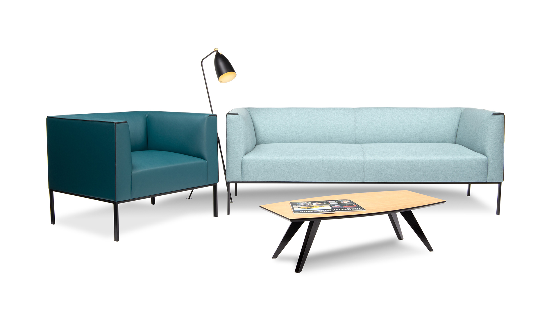 Обивка: ткань, экокожа, кожа Опоры: металлическая рама черного цвета