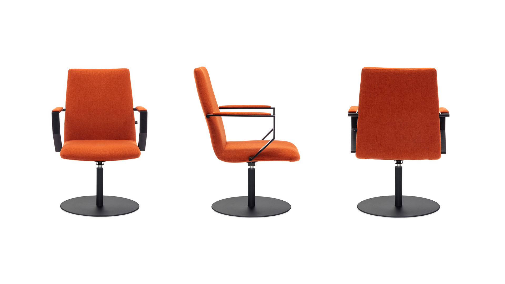 Обивка: ткань, экокожа, кожа Подлокотник: черный с накладками в цвет кресла Опора: черная