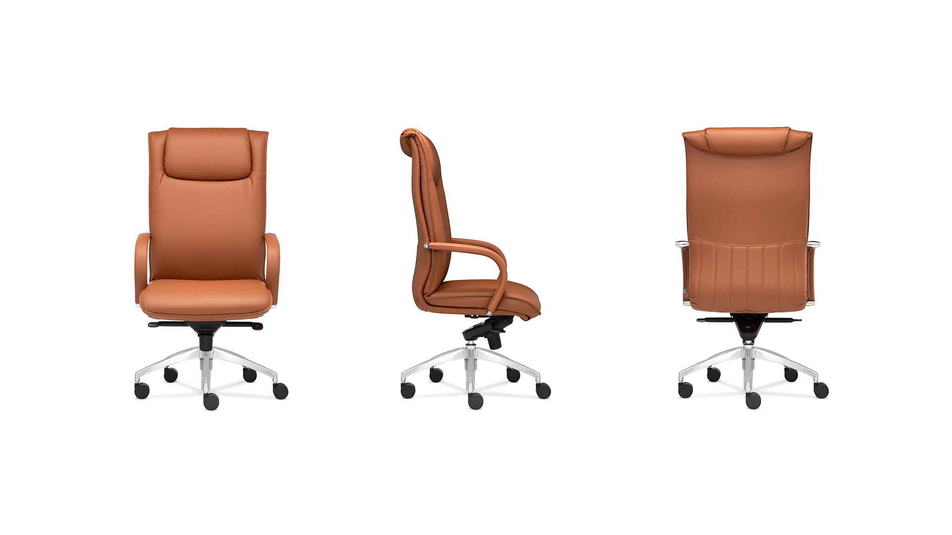 Обивка: ткань, экокожа, кожа+кожзам, кожа Механизм: мультиблок Подлокотник: в цвет кресла с декоративными хромированными вставками Опора: полированный алюминий
