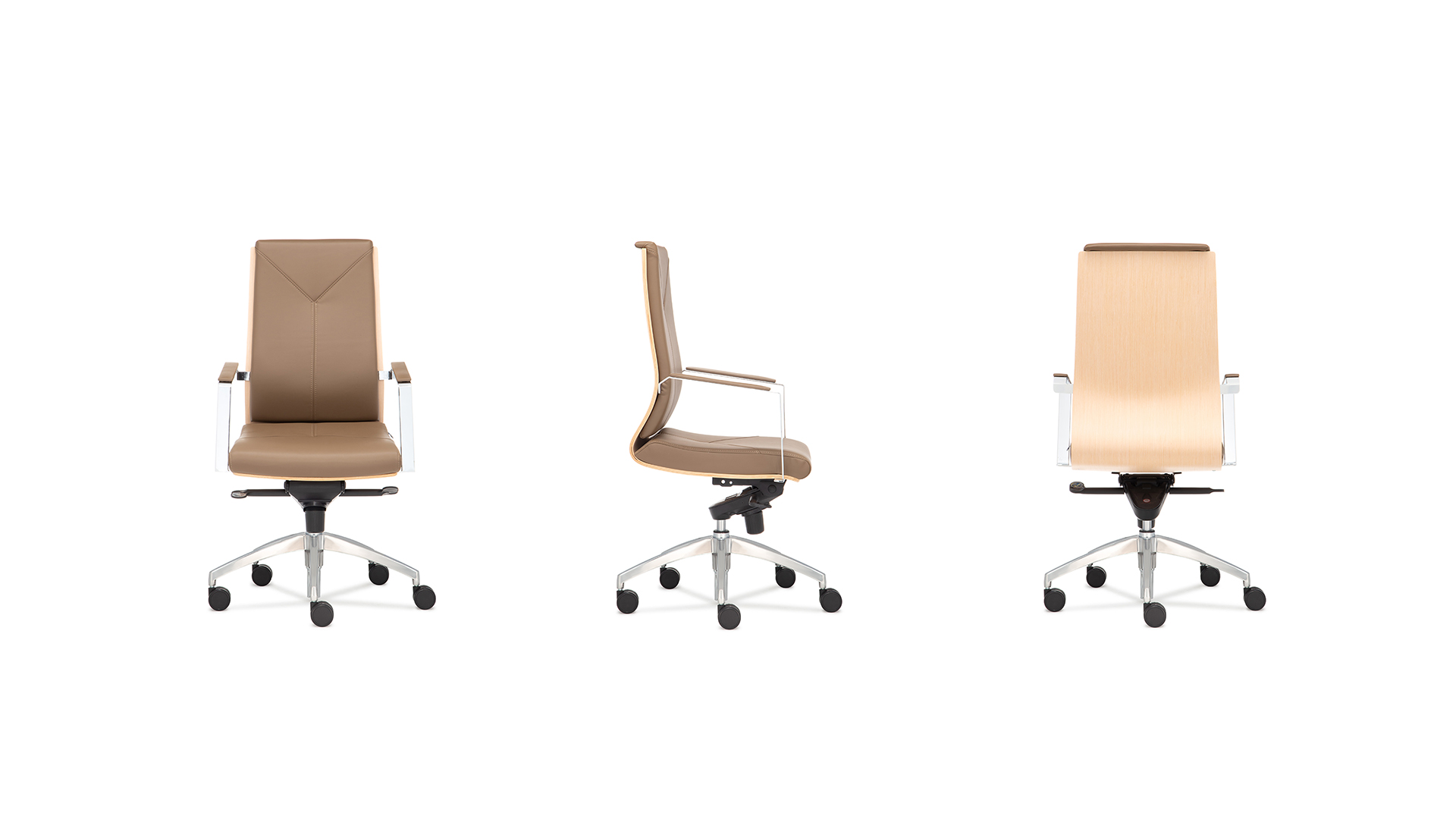Обивка: ткань, экокожа, кожа Спинка: шпон венге или выбеленный дуб Механизм: мультиблок Подлокотник: хром с накладками в цвет кресла Опора: полированный алюминий