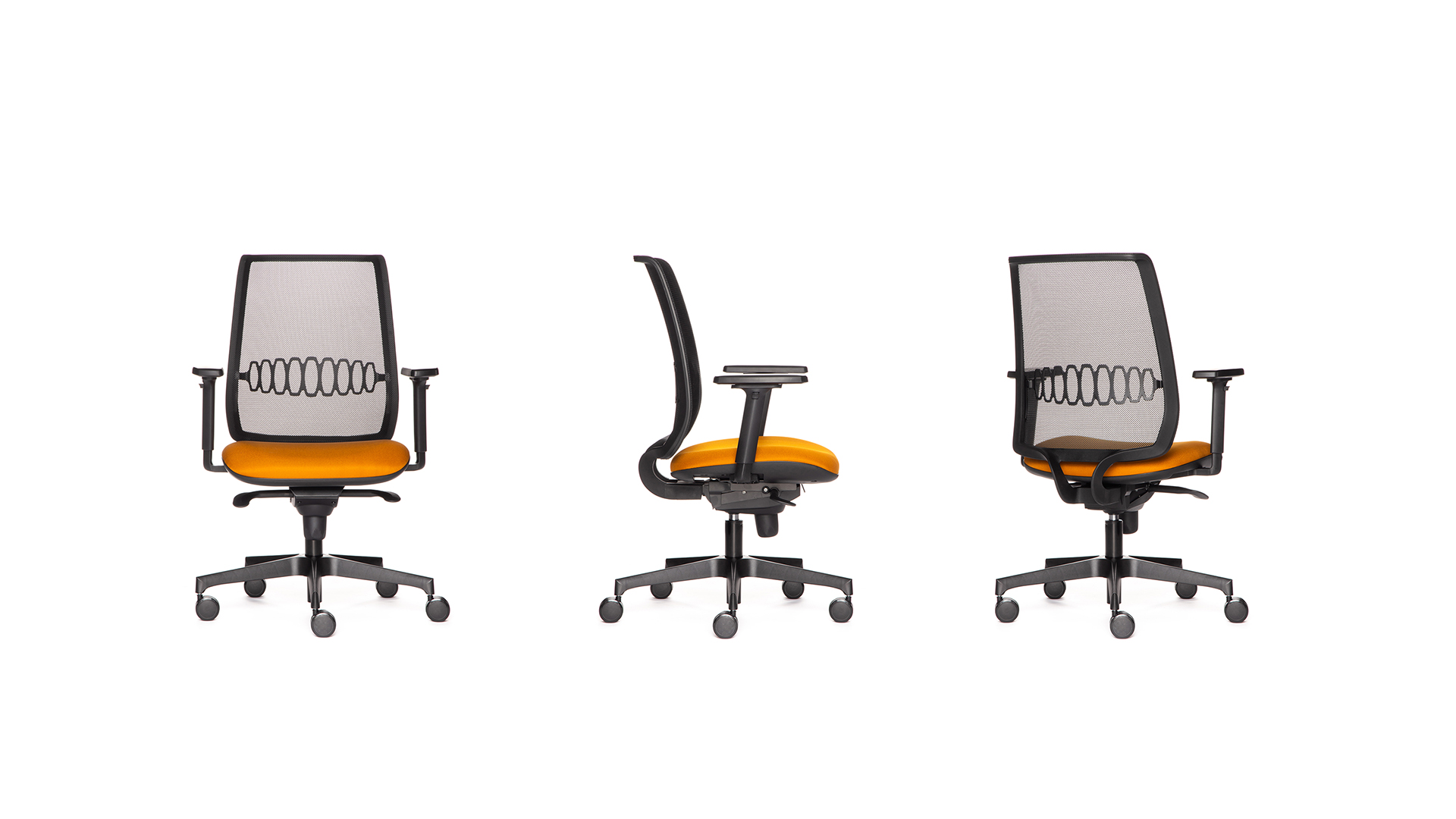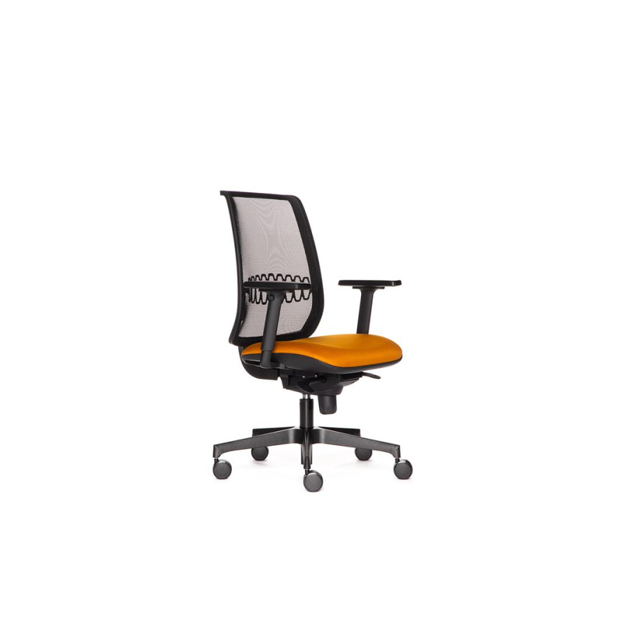 Обивка: ткань, экокожа Спинка: сетка черного или белого цвета с поясничной поддержкой Декоративный кант (6 цветов на выбор) по периметру спинки Механизм: синхро-механизм Подлокотник: хром/черные/белый с пластиковым топом Опора: полированный алюминий, черная, белая