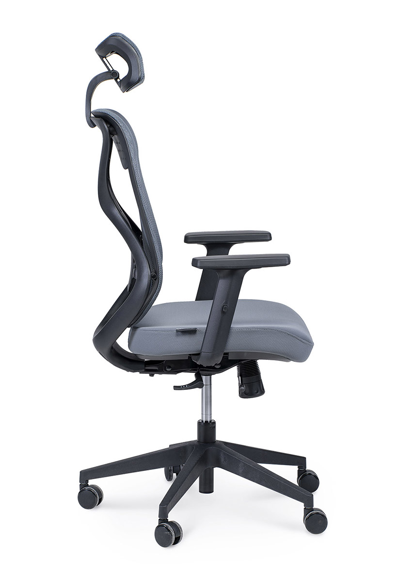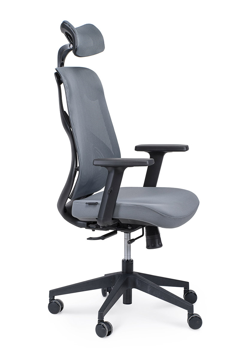 Суперсовременное офисное кресло, выполненное с учетом новейших дизайнерских тенденций. Анатомический дизайн спинки и поясничного упора. Обивка спинки выполнена из высокопрочной сетки, что позволяет спине дышать. Сиденье обито тканью высокого качества с наполнителем memory foam. Регулируемый подголовник. Регулируемые Т-образные подлокотники с мягкой накладкой. Механизм качания - мультиблок с возможностью фиксации в любом положении. Слайдер. Крестовина - высокопрочный пластик. Бесшумные прорезиненные ролики. Максимальная нагрузка 120 кг.