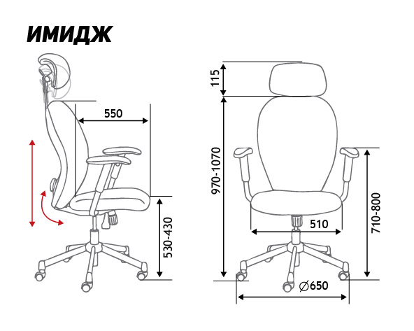 Высота сиденья, мм 410-510